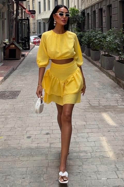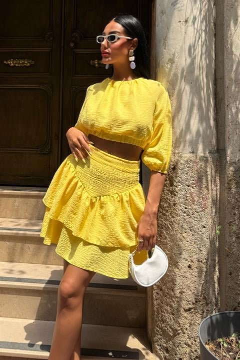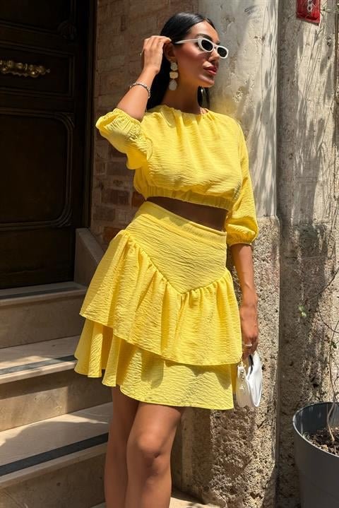 Crop Bluz Ve Kat Kat Etekli Takım 10207
