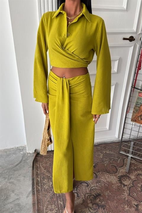 Crop Gömlekli Ve Eteği Büzgülü Tasarım Takım 10195