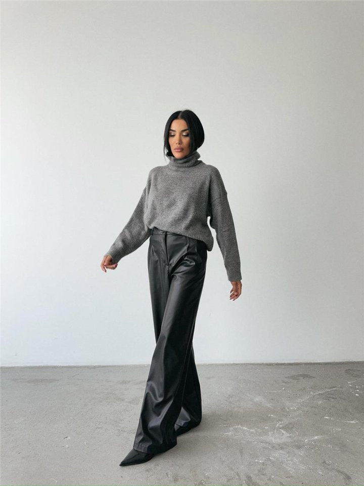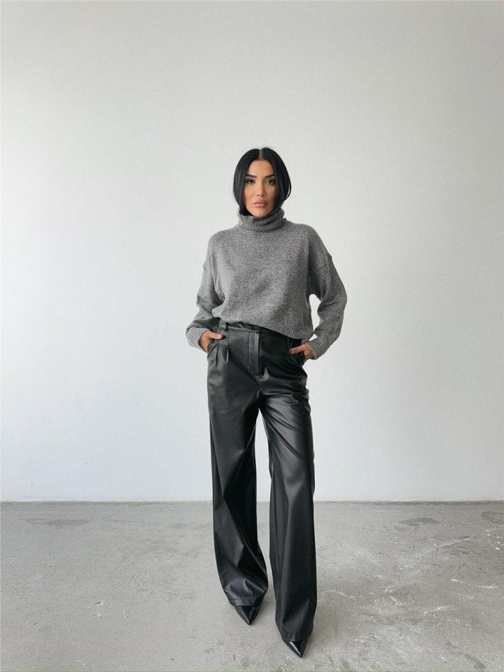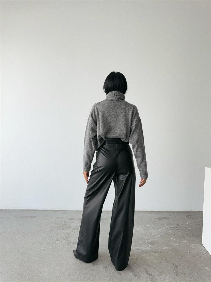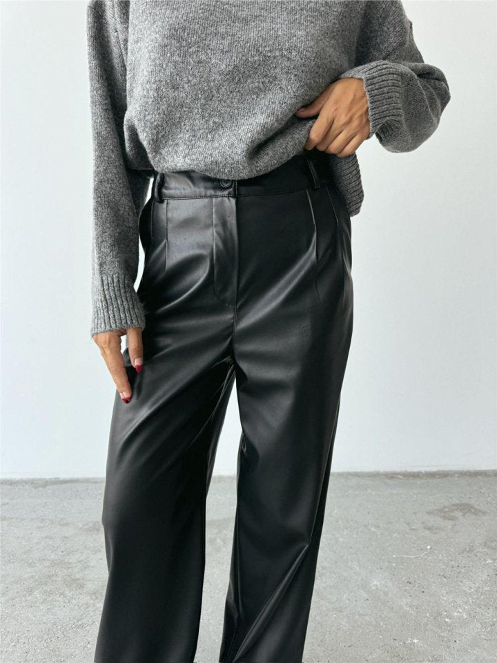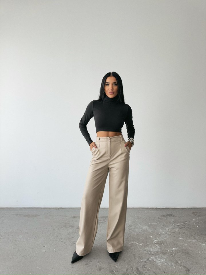 DERİ PALAZZO PANTOLON BORU PAÇA - Siyah
