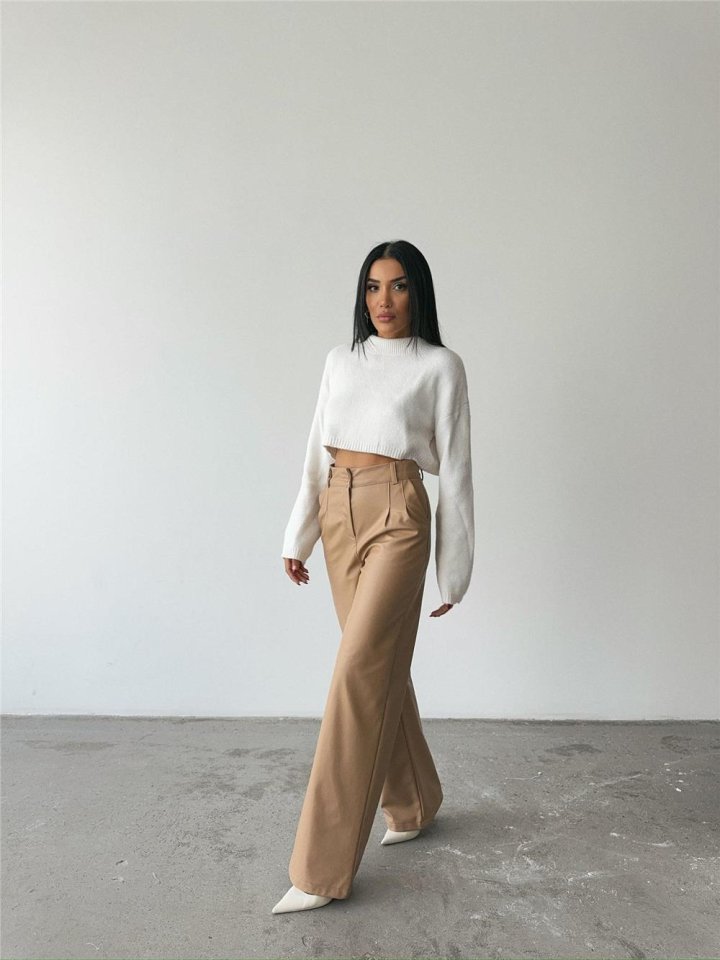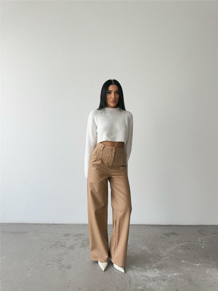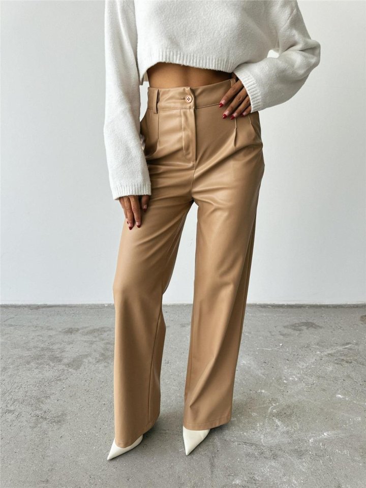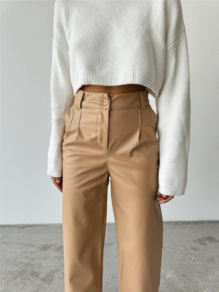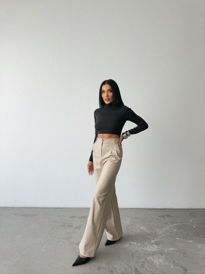 DERİ PALAZZO PANTOLON BORU PAÇA - Siyah