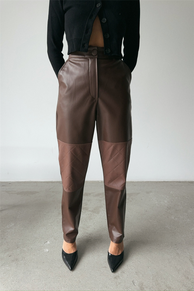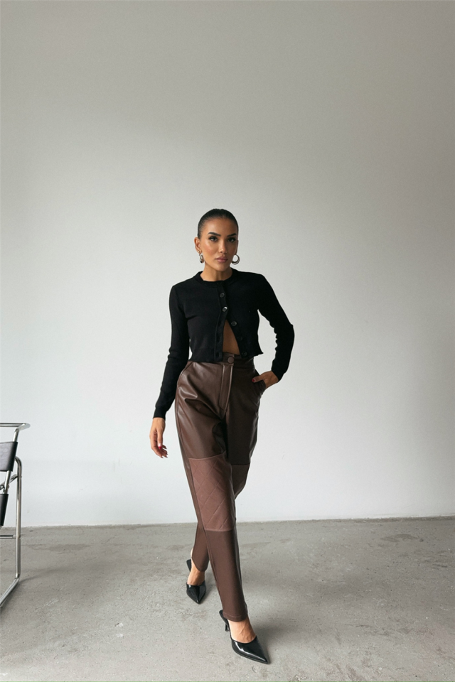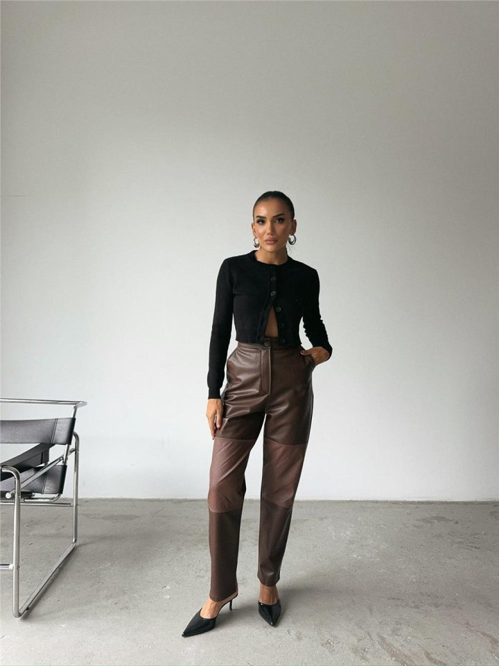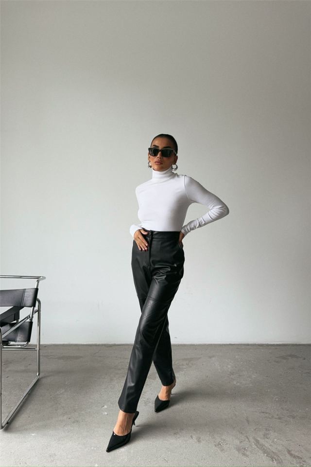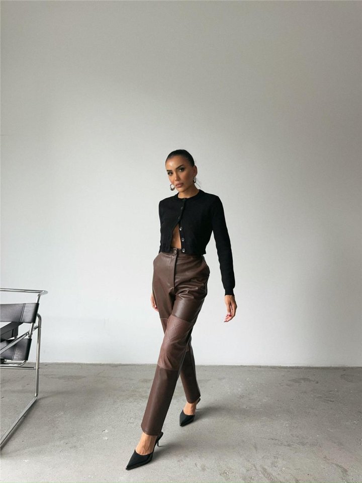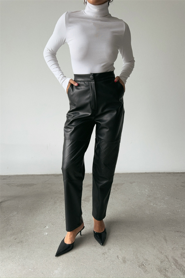 DERİ PANTOLON DİZ PARÇALI - Siyah