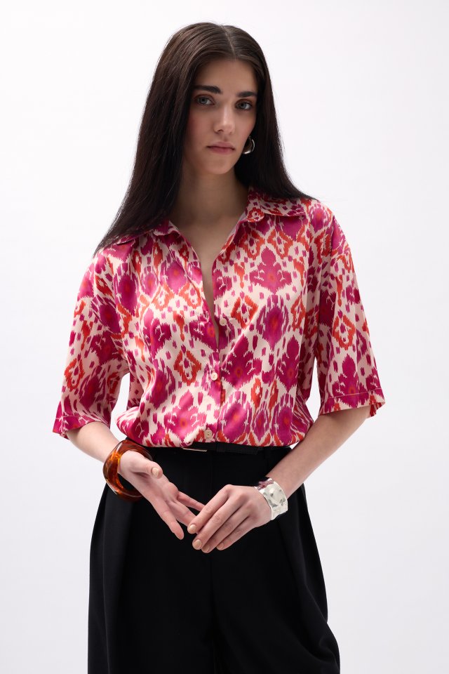 Desenli Saten Gömlek