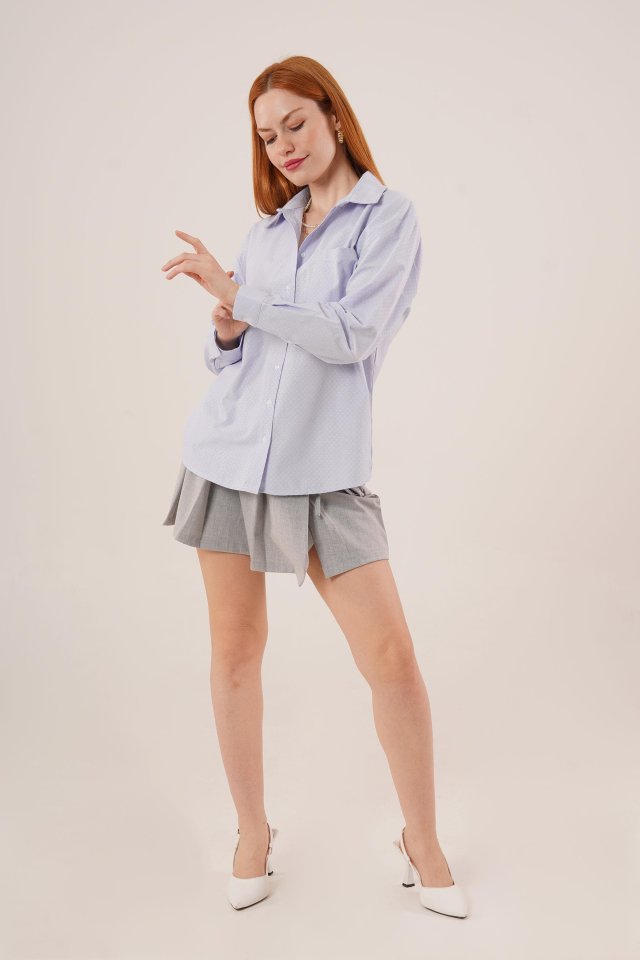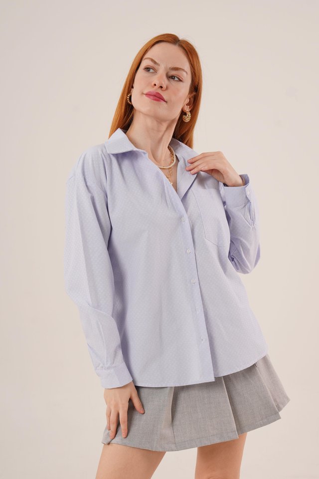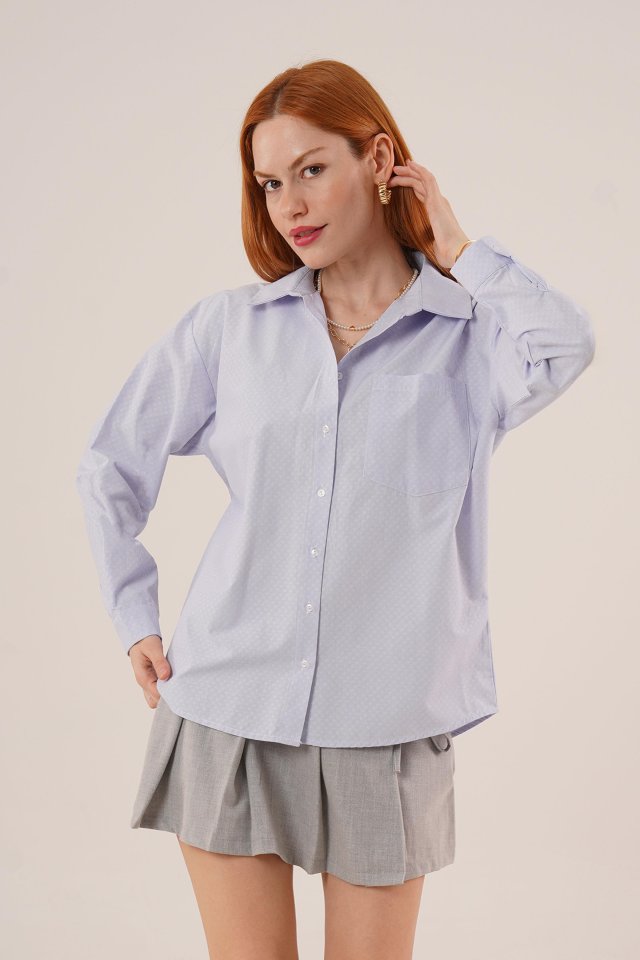 Desenli Tek Cepli Düğmeli Mavi Gömlek