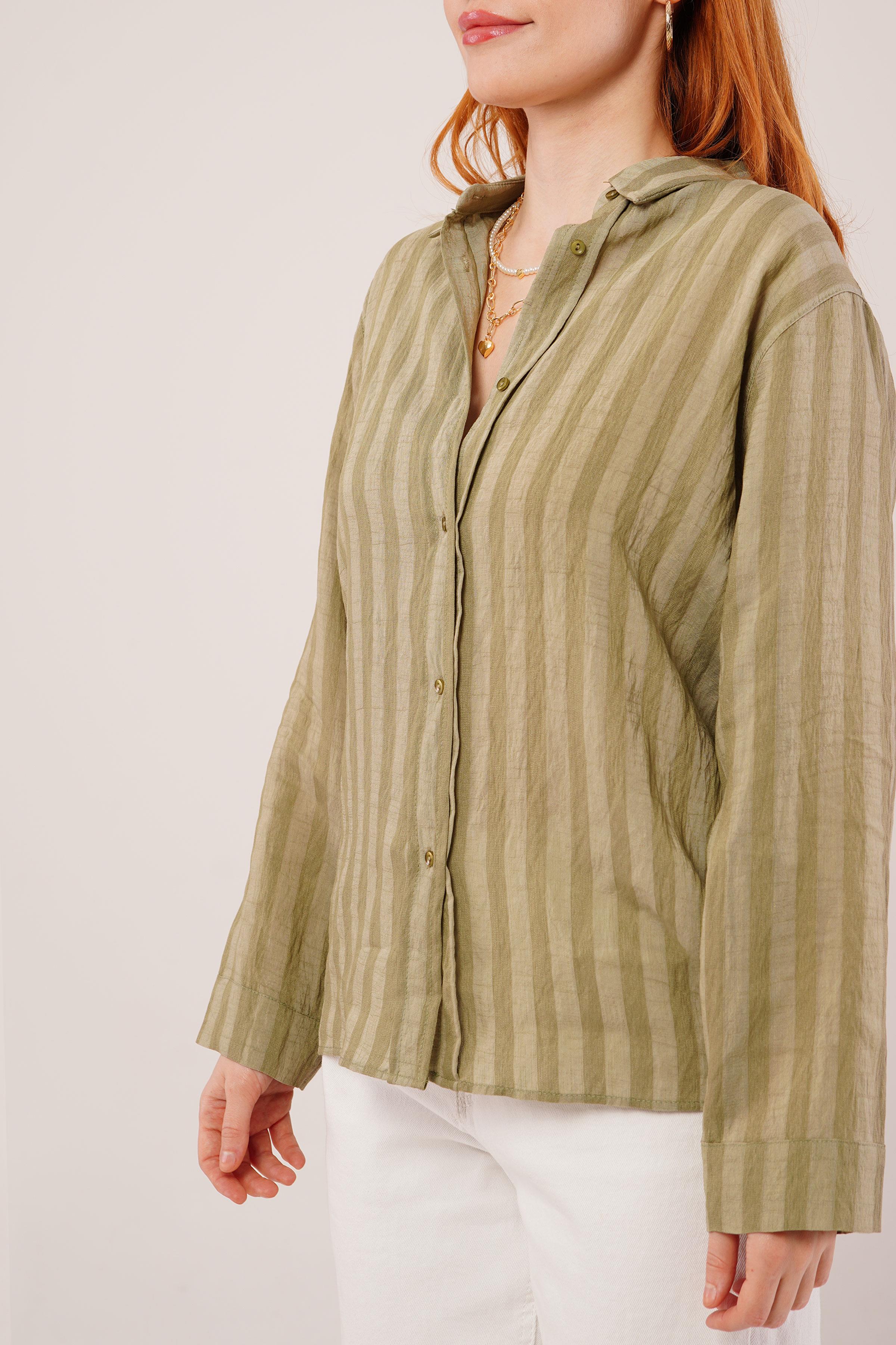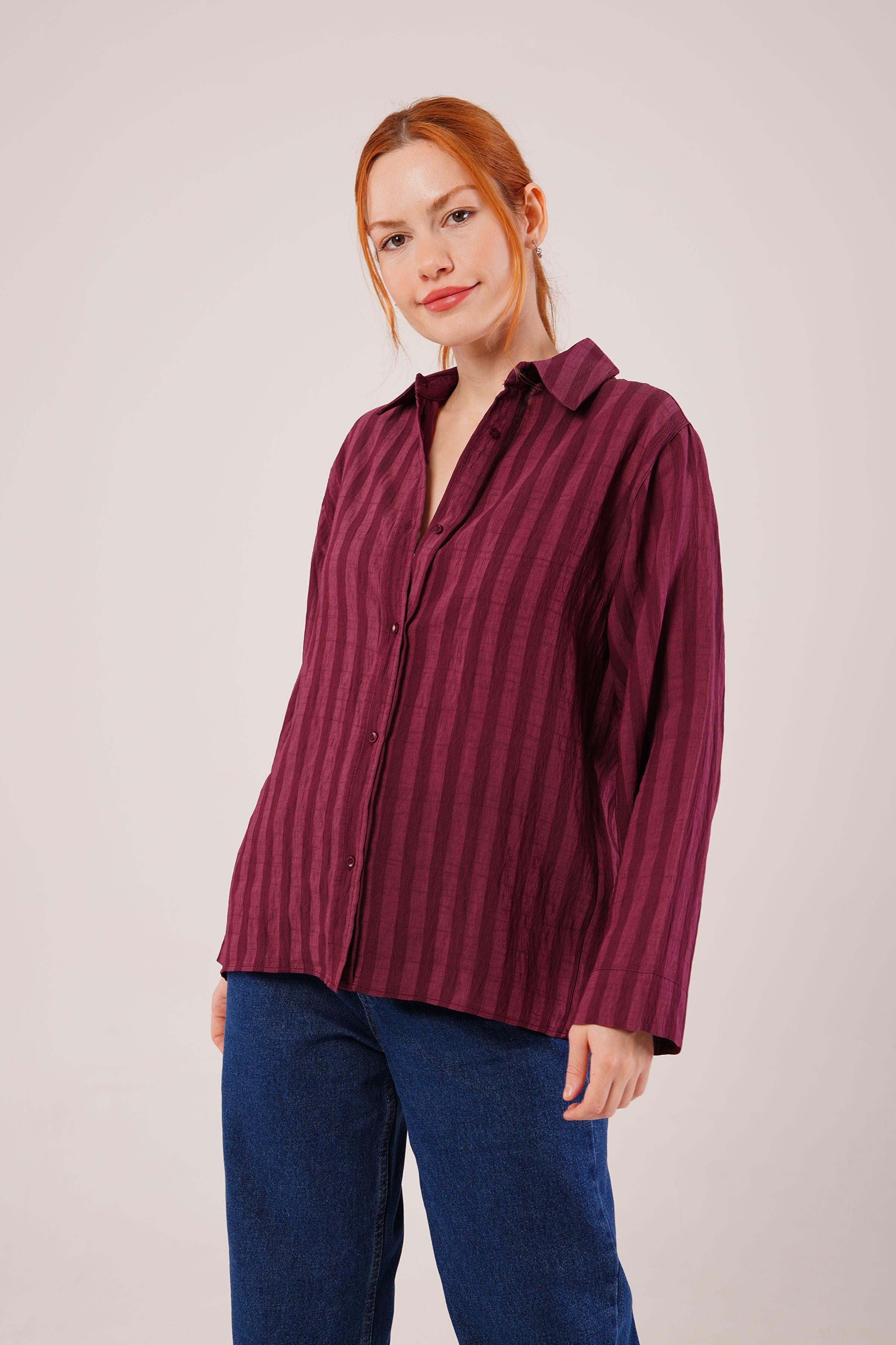 Düğmeli Ve Çizgi Detaylı Siyah Gömlek