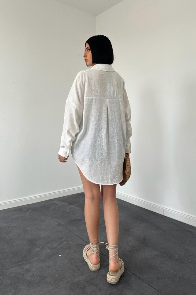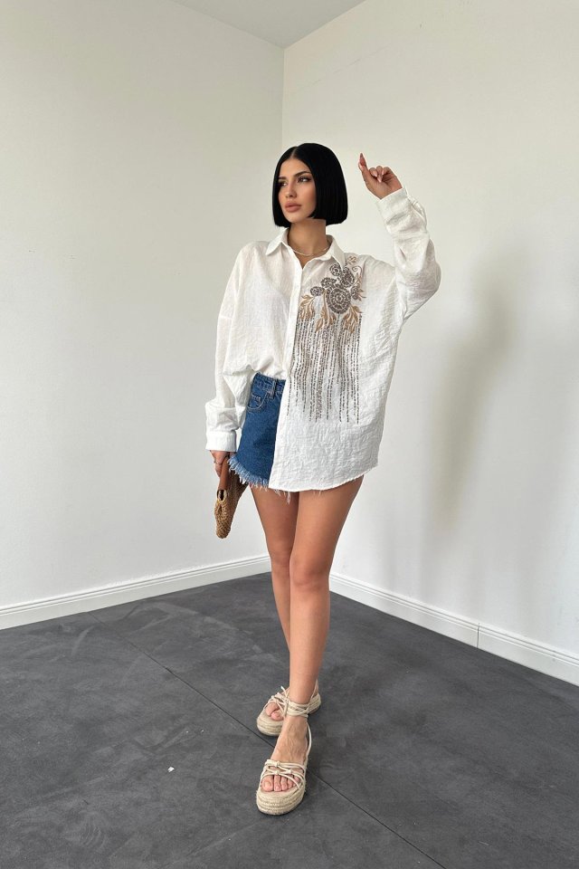 Ekru Pulpayet Nakışlı Bedensiz Gömlek