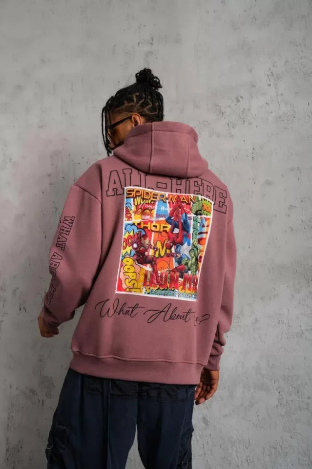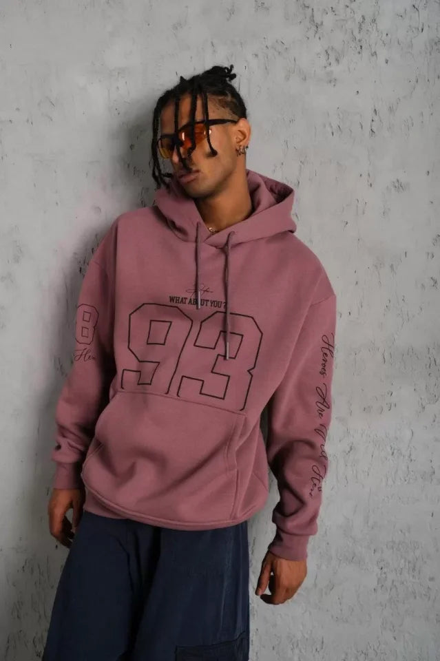 Erkek 93 Dijital Parça Baskılı Kapşonlu Sweat - Gül Kurusu