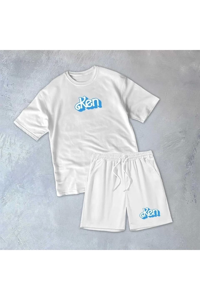 Erkek Baskılı İkili Şort Takım - Beyaz
