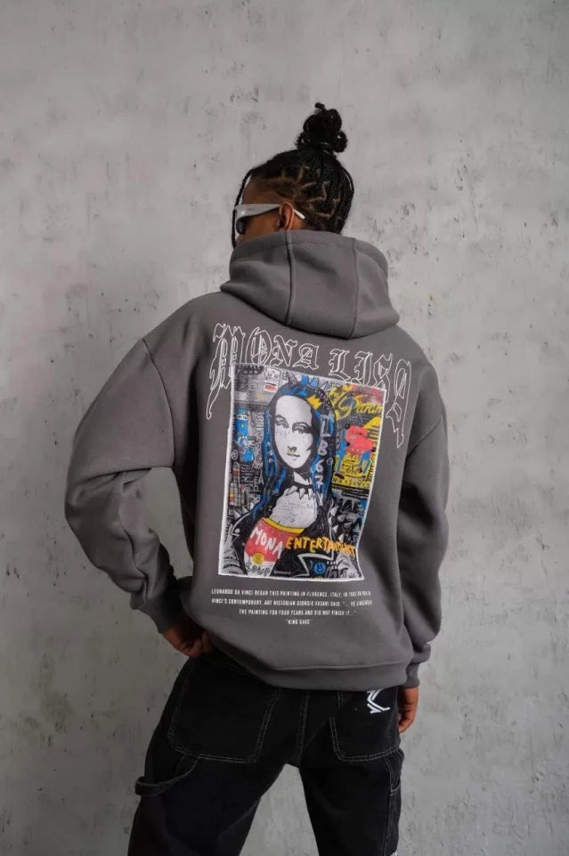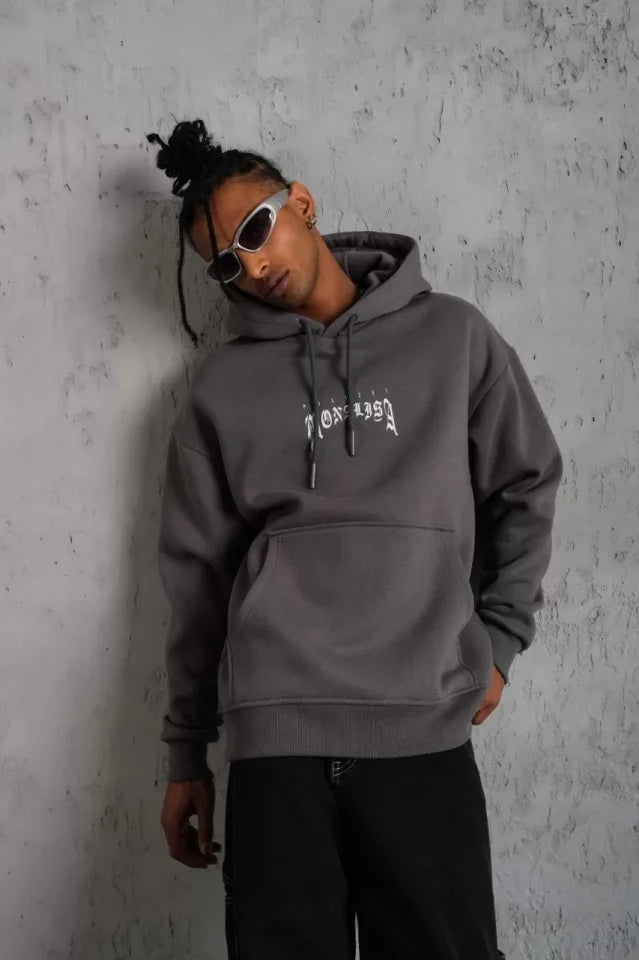 Erkek Baskılı Kapüşonlu Ve Kanguru Cepli Sweat- Gri