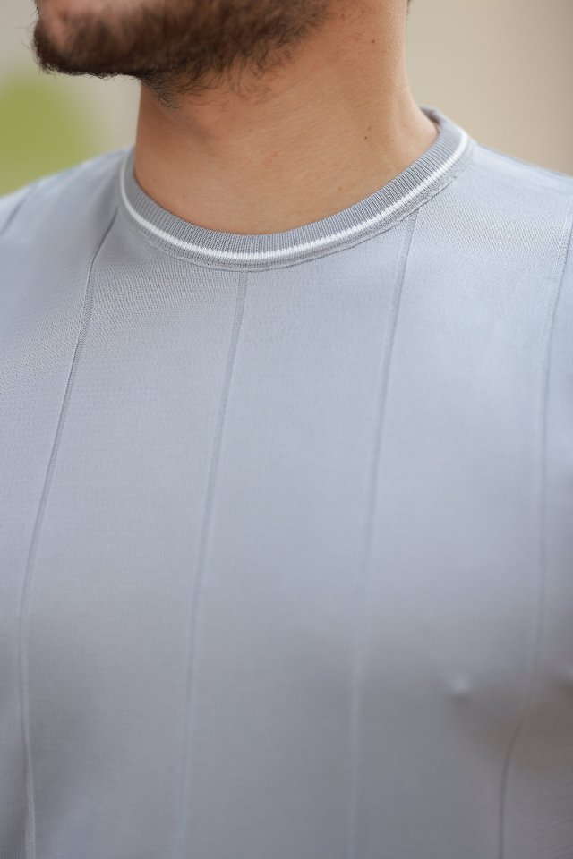 Erkek Bisiklet Yaka çizgi Desenli Ribanalı Kısa Kollu Tshirt