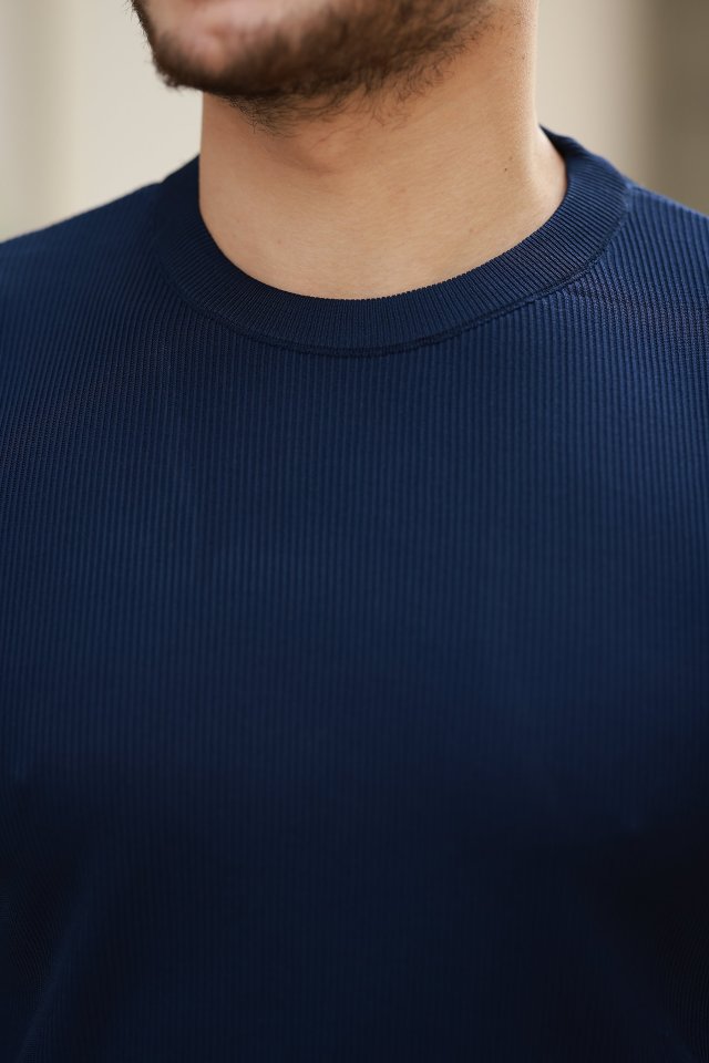 Erkek Bisiklet Yaka Jakarlı Kısa Kollu Tshirt