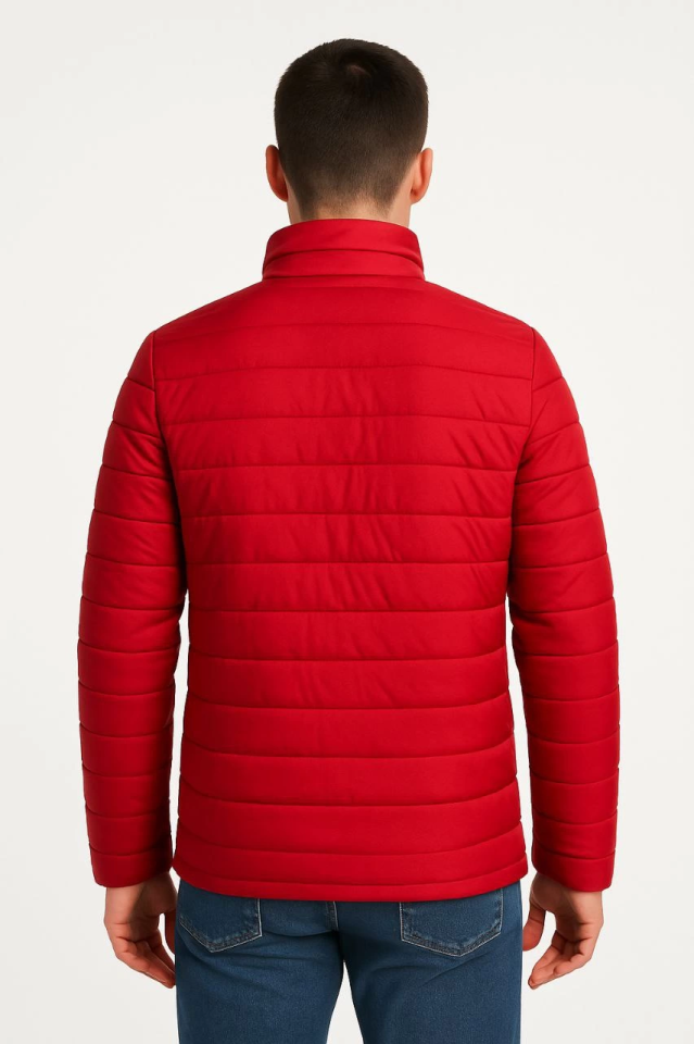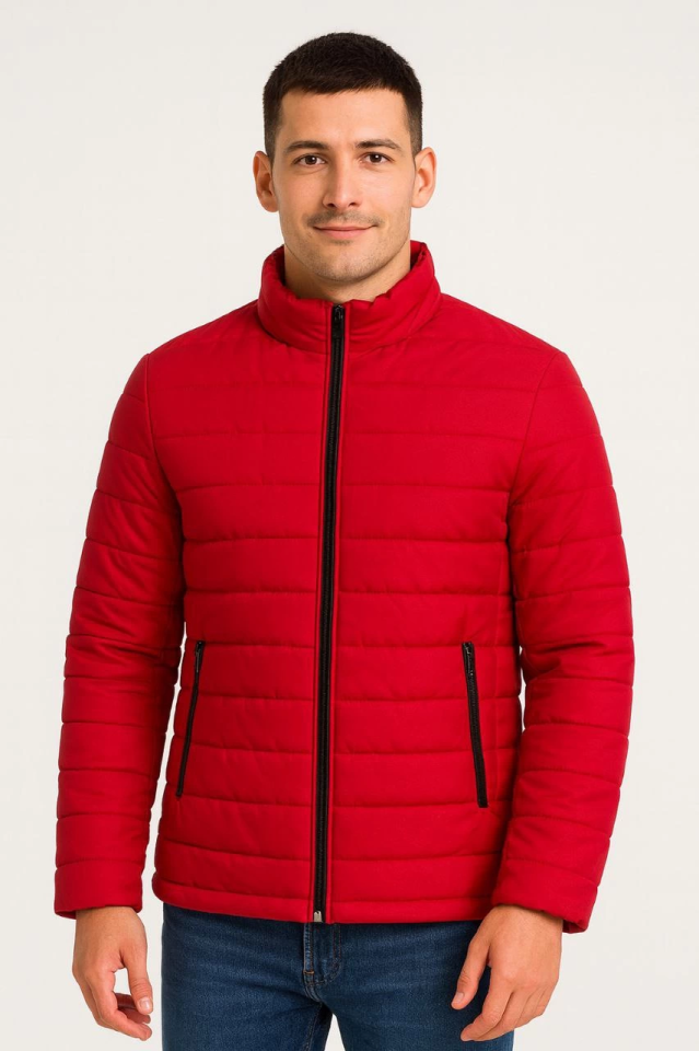 Erkek Bomber Mont Ceket – Su İtici Kumaş, Kapitone Astarlı, Fermuarlı, Kışlık - Kırmızı