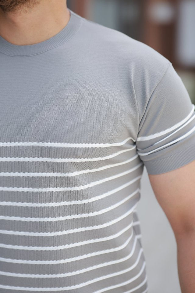 Erkek çizgi Desenli Bisiklet Yaka Kısa Kollu T-sihrt