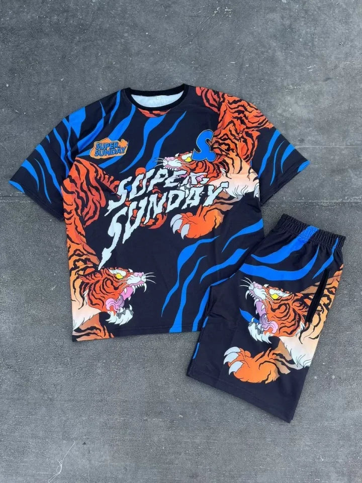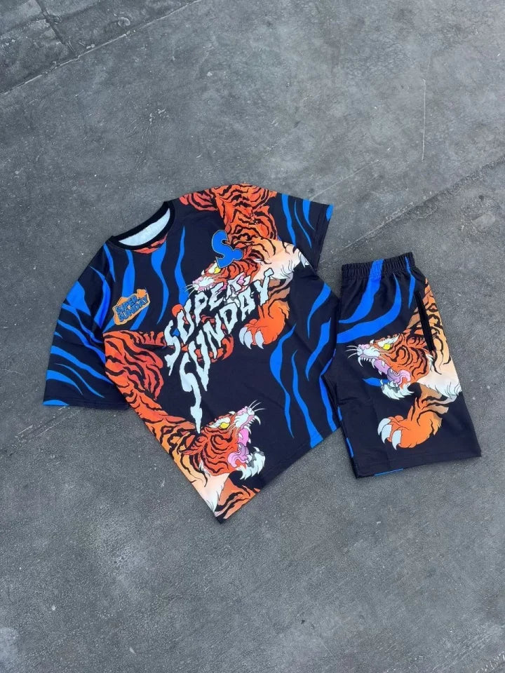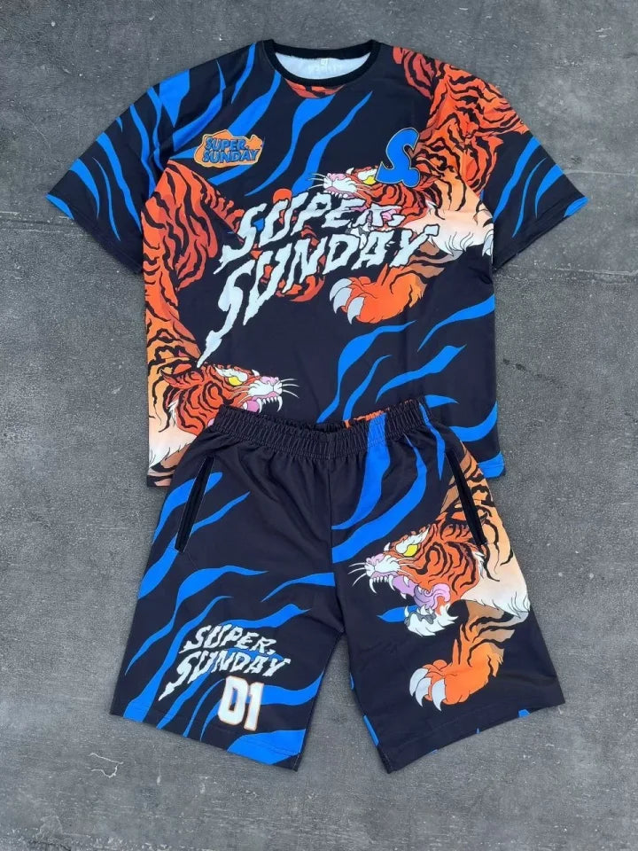 Erkek Dijital Baskılı Şortlu Takım - Mavi