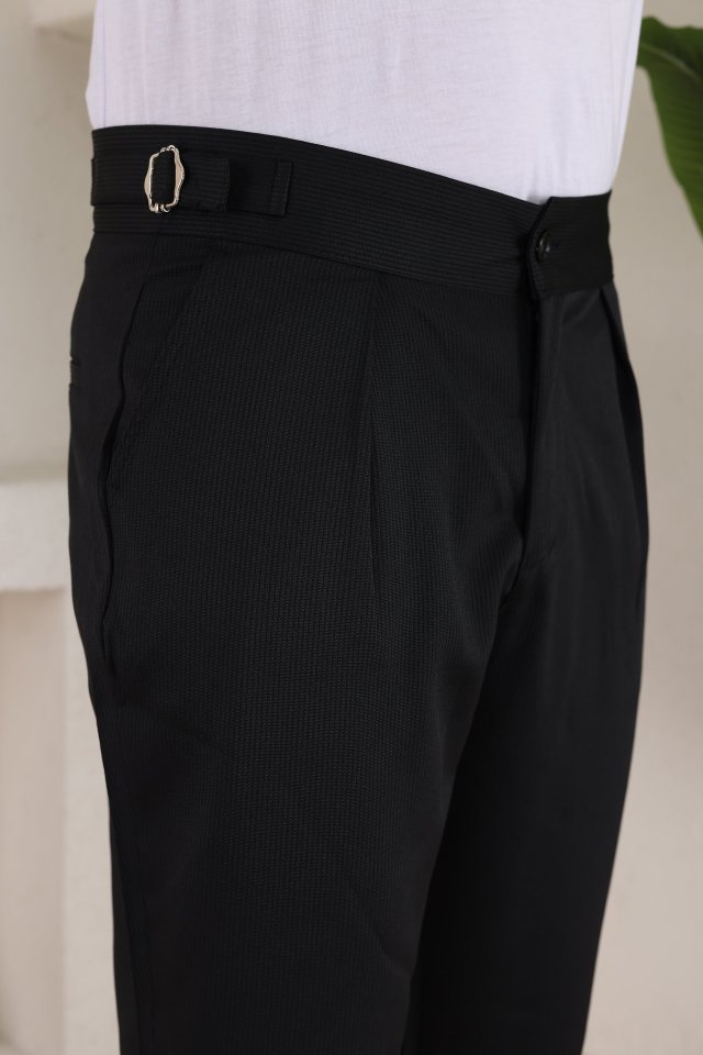 Erkek Duble Paça Yandan Tokalı Cord Desenli Old Money Pantolon