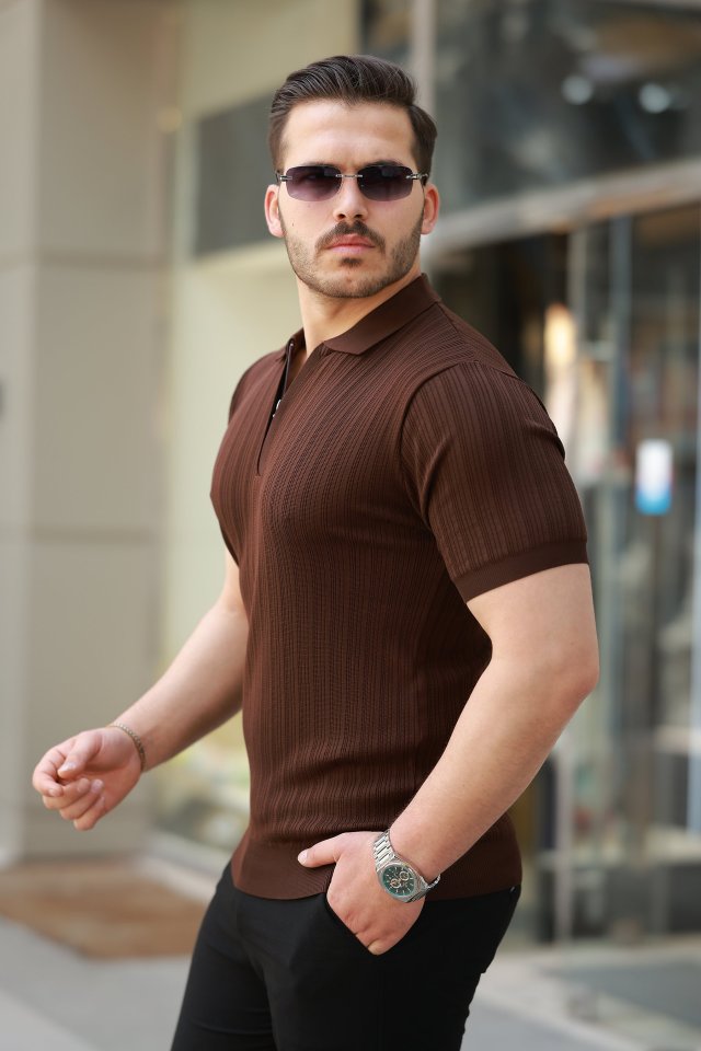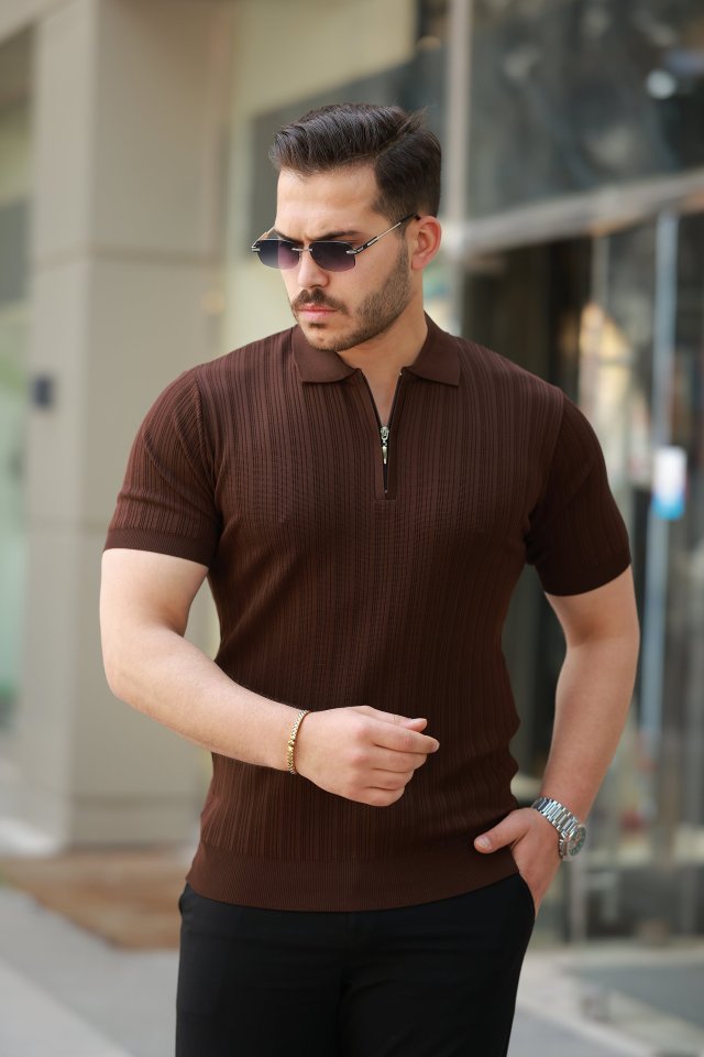 Erkek Fermuar Yakalı Kısa Kollu Tişört