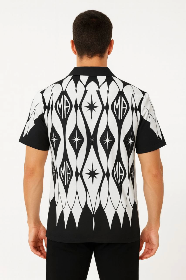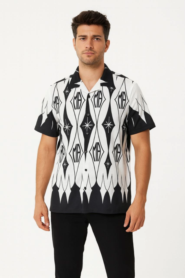 Erkek İki İplik Kumaş Dijital Baskılı Gömlek - Siyah