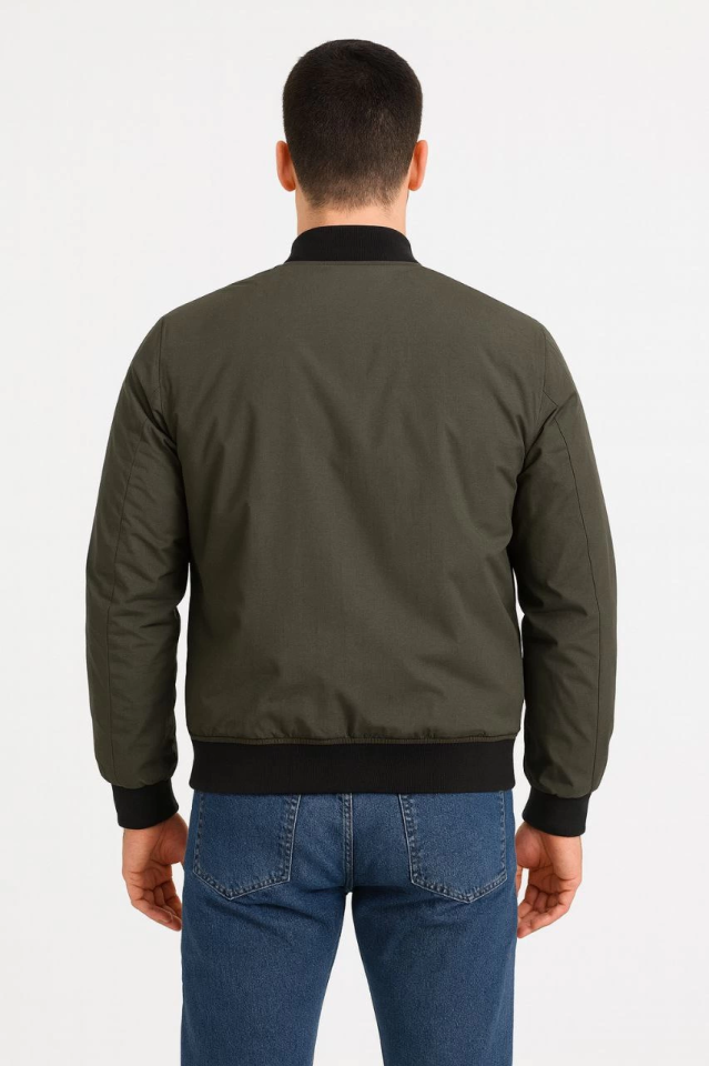 Erkek Içi Astarlı Fermuarlı Bomber Mont Ceket - Haki