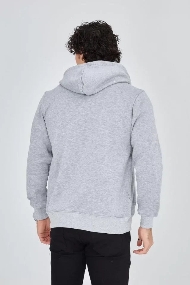Erkek Kapüşonlu Baskılı Fermuarlı Hırka - Gri