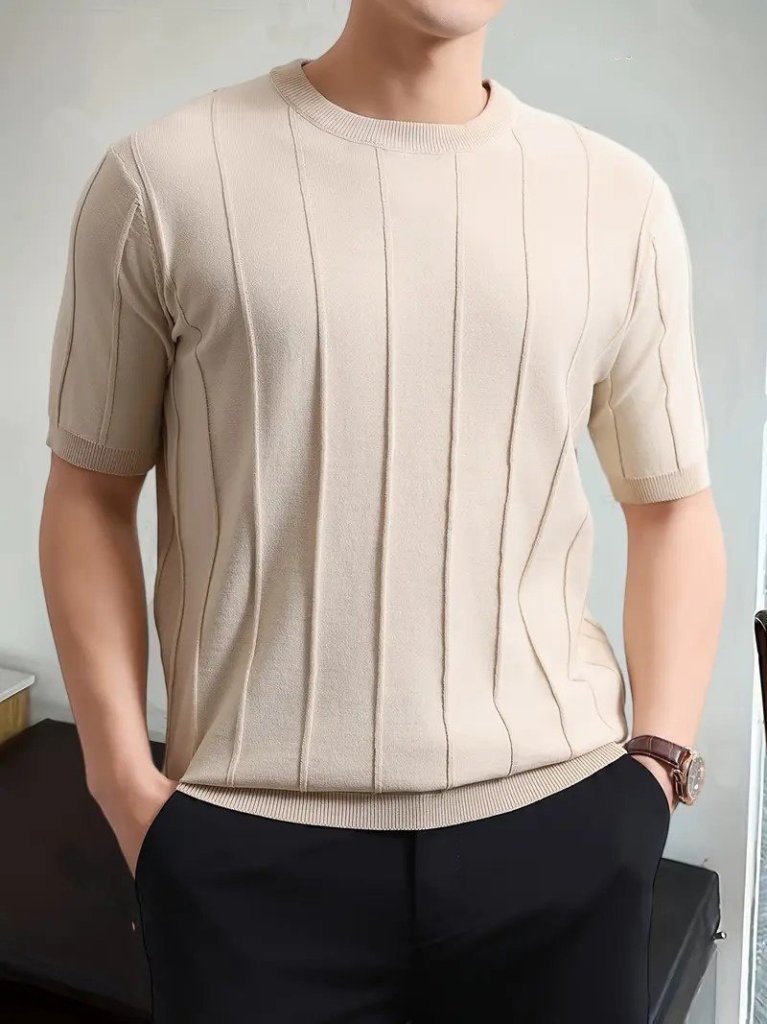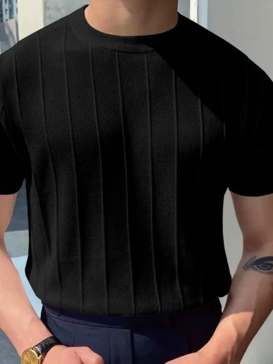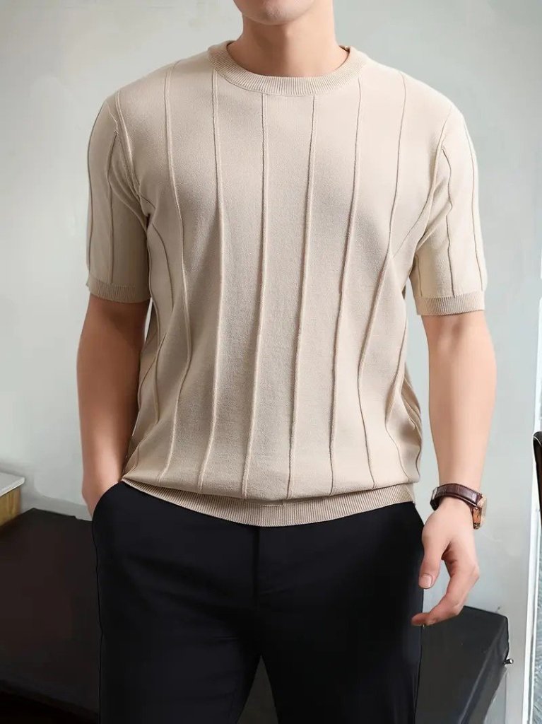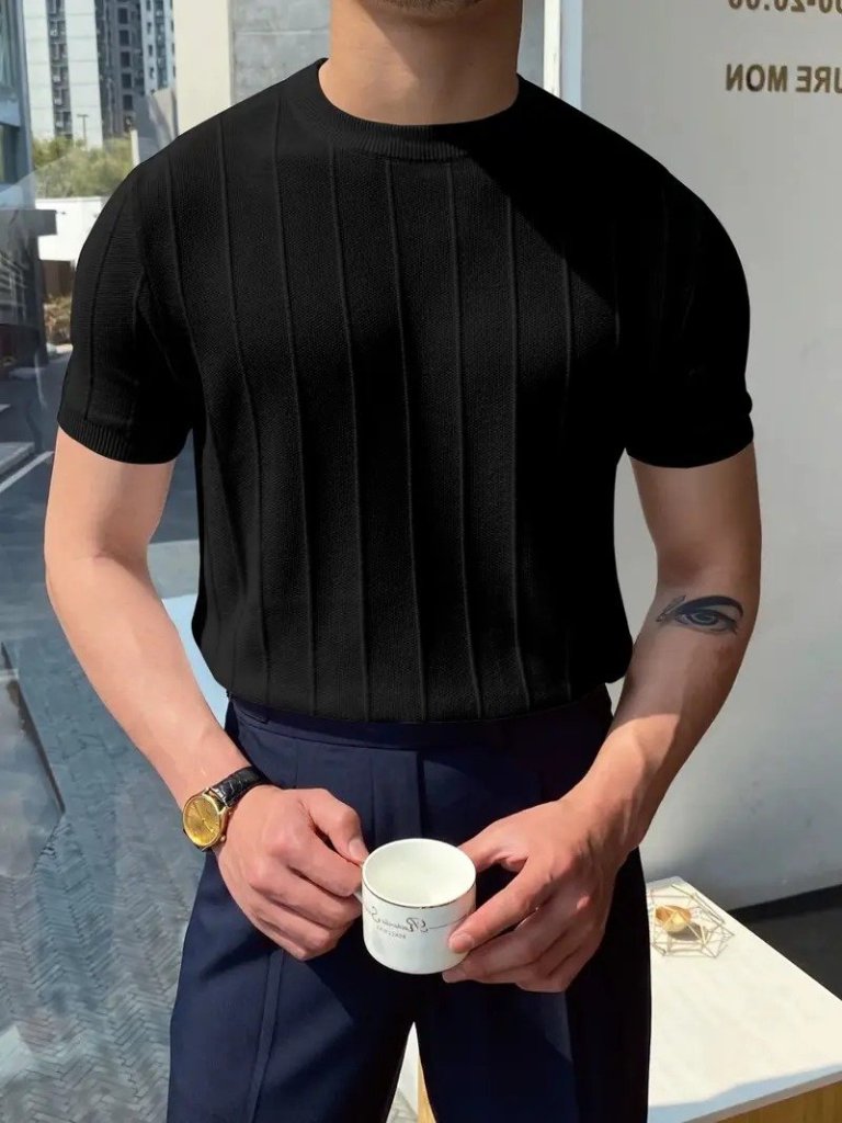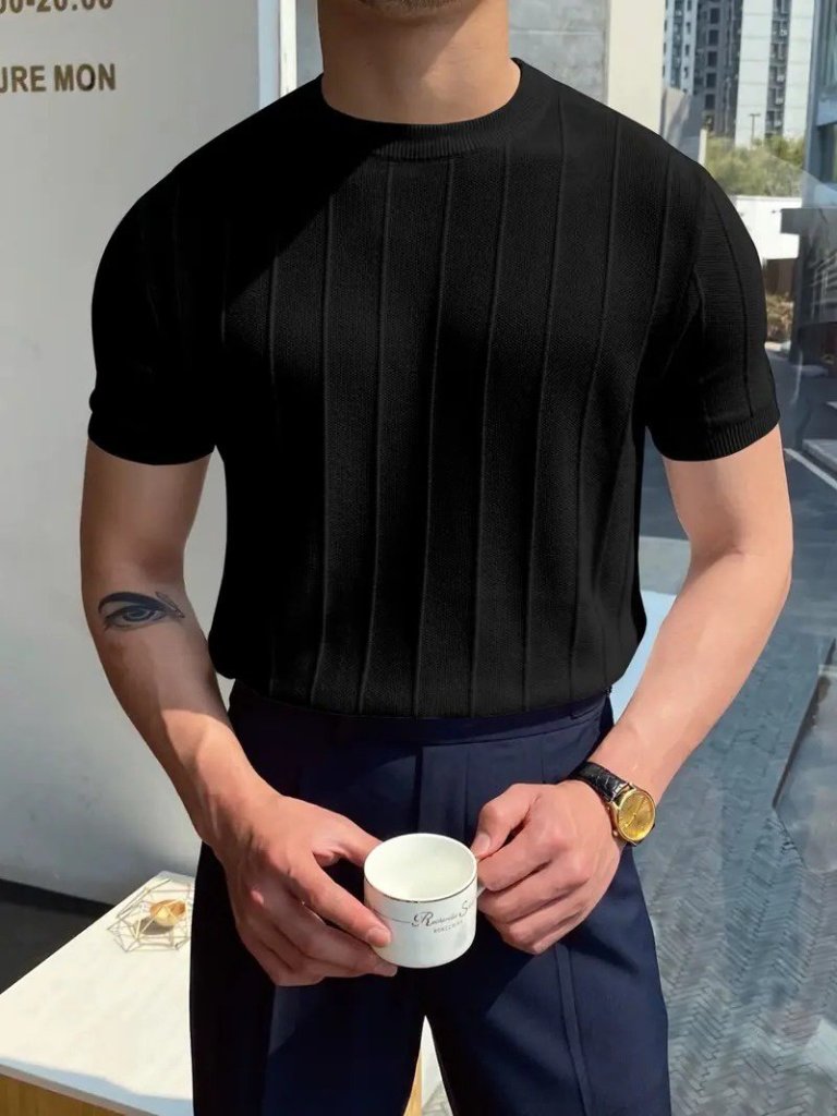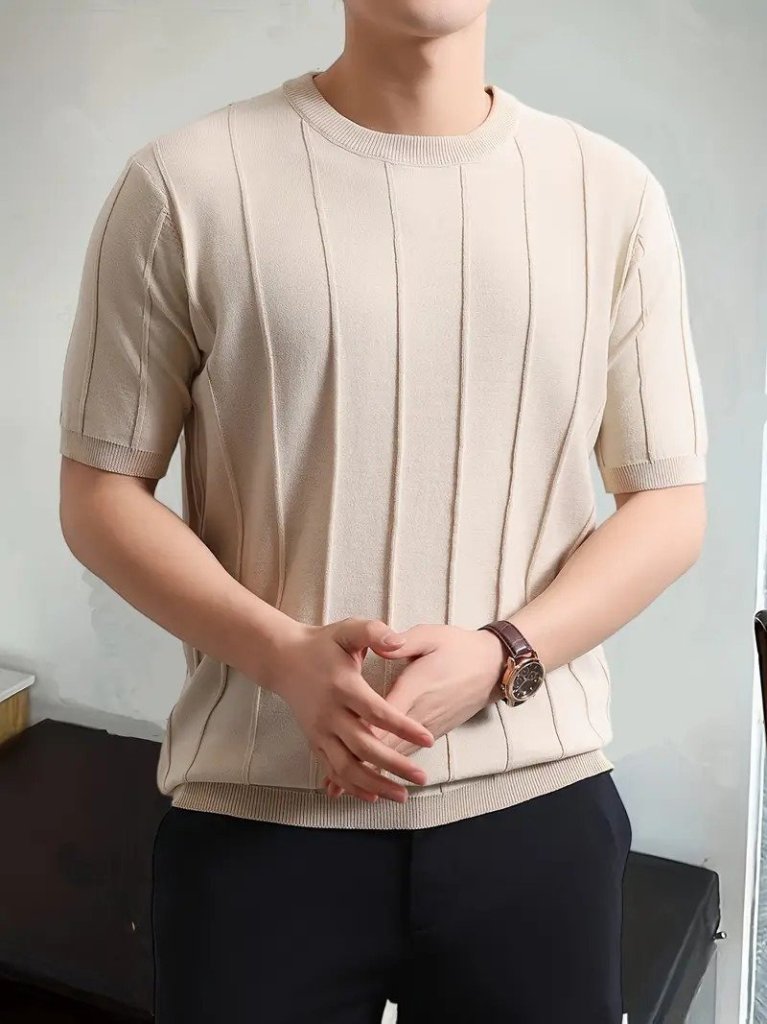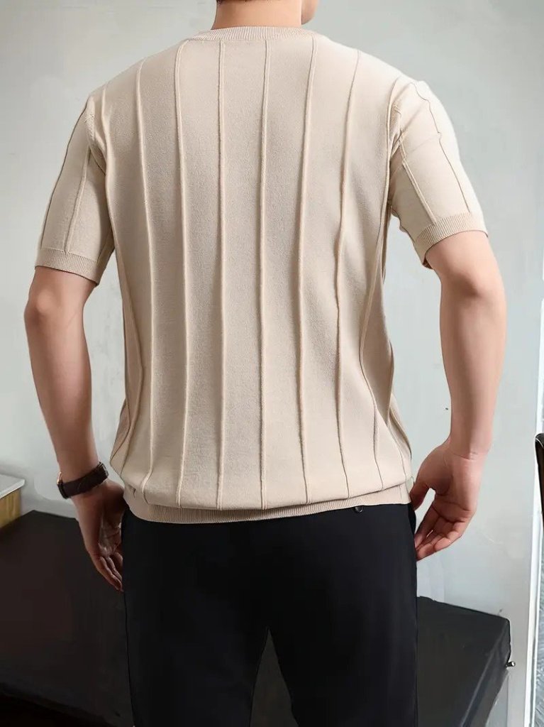 Erkek Kısa Kollu Bisiklet Yaka çizgili Triko Bluz