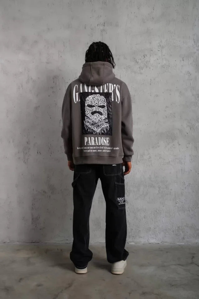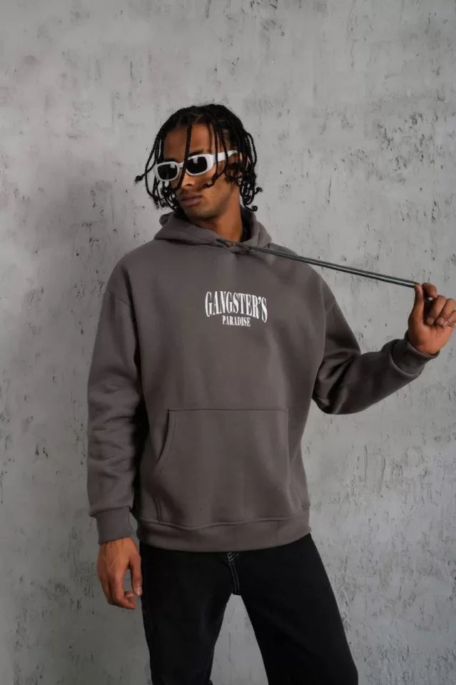 Erkek Paradise Baskılı Kapüşonlu Sweat - Gri