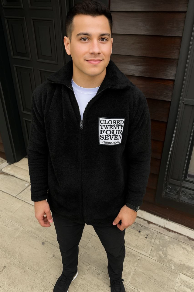 Erkek Polar Fermuarlı Sweatshirt – Kapüşonsuz, Cepli, Yumuşak Dokulu, Oversize Rahat Kalıp, Kışlık Sıcak Tutan Fermuarlı Üst - Siyah