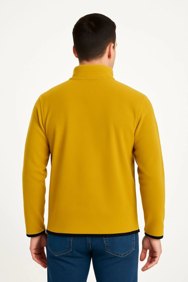 Erkek Polar Kazak – Dik Yaka, Yarım Fermuarlı, Fermuarlı Göğüs Cepli, Siyah Biyeli, Kışlık Rahat Regular Fit Günlük Model - Sarı