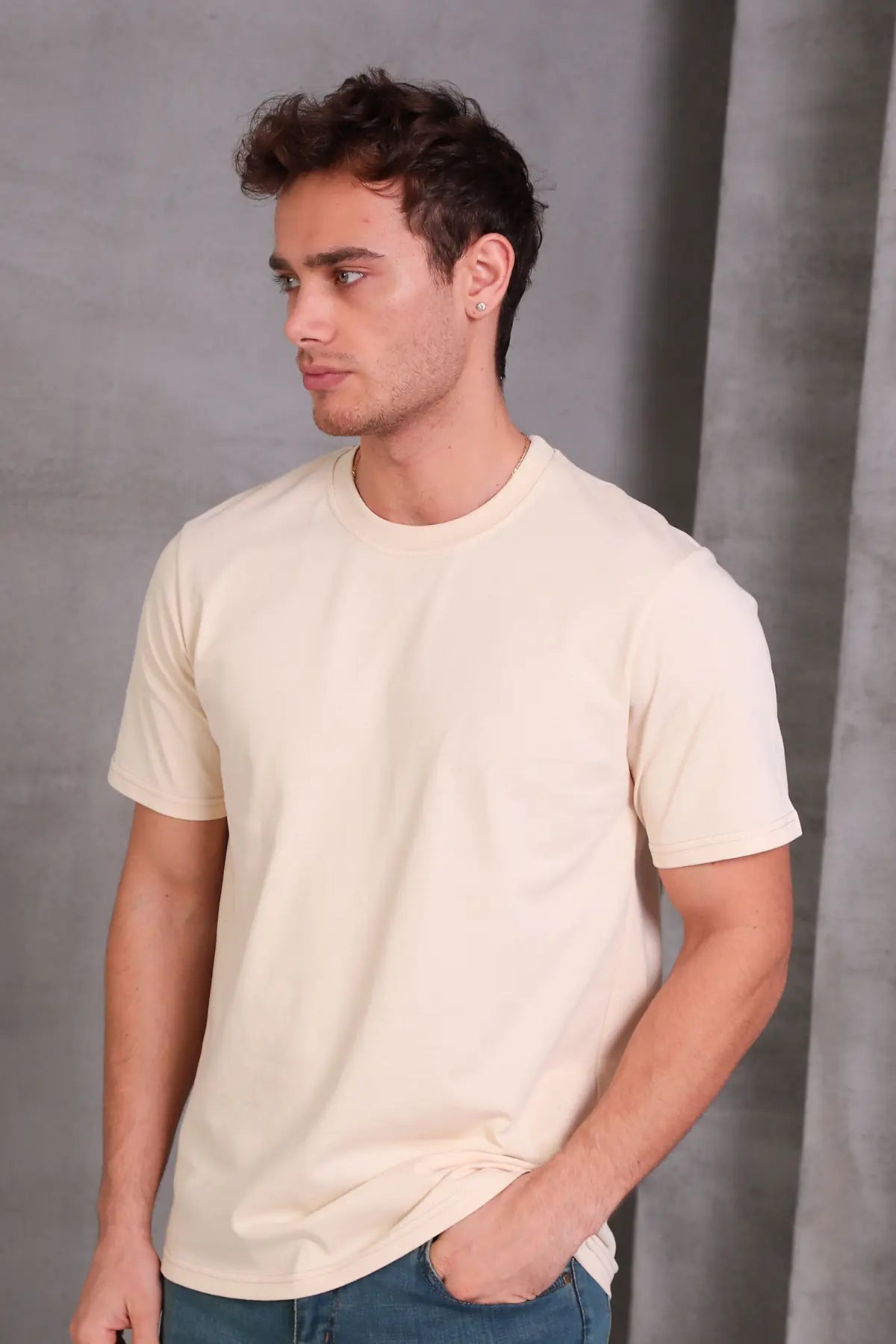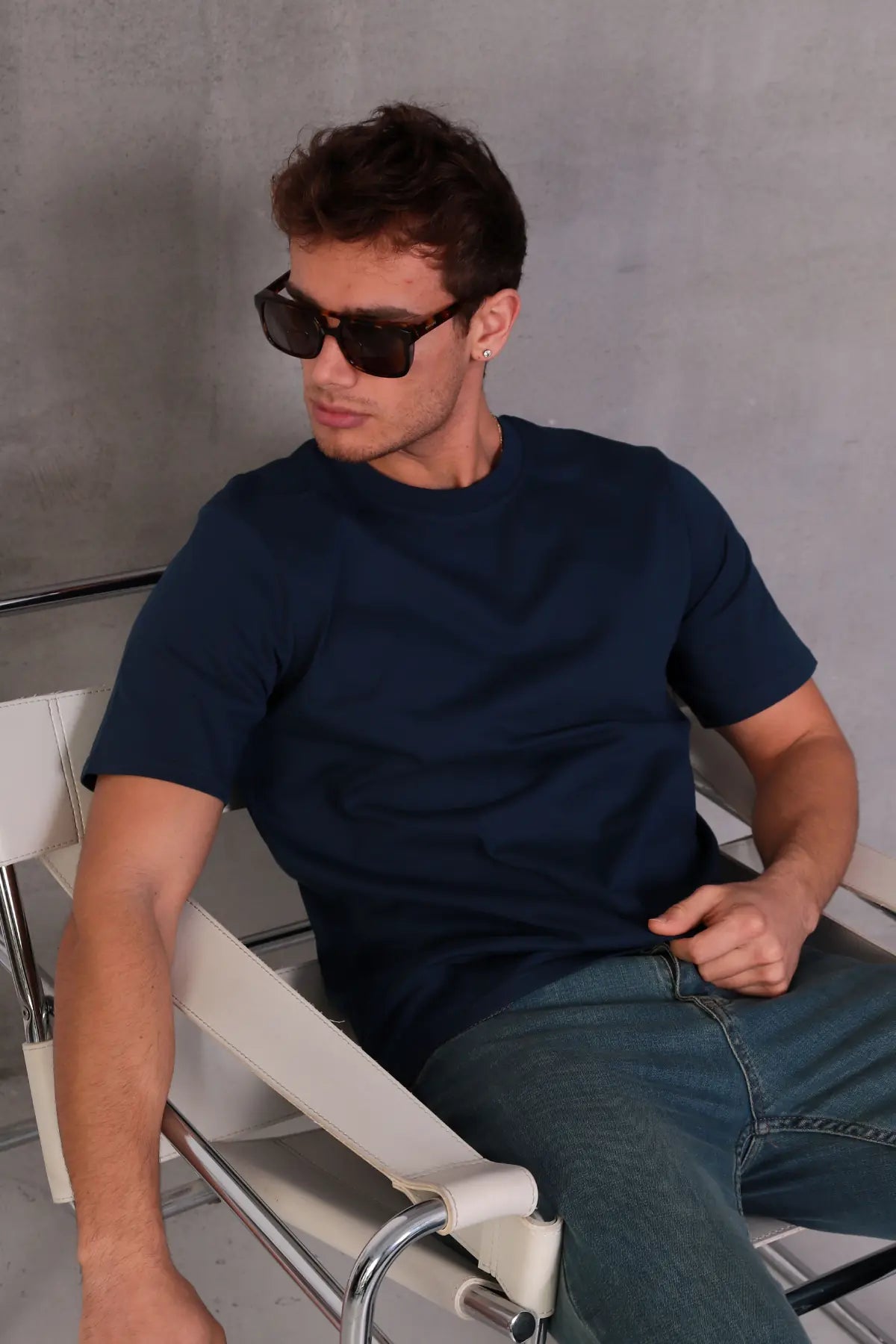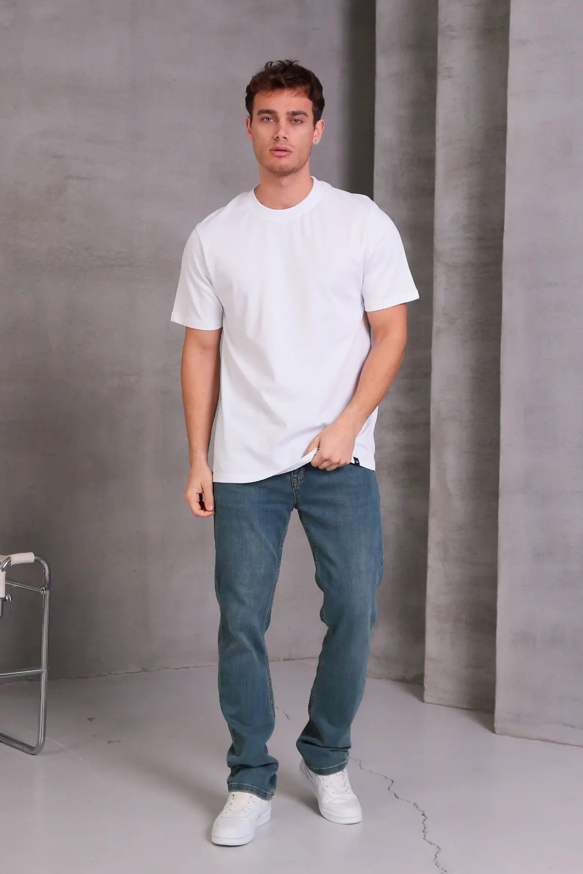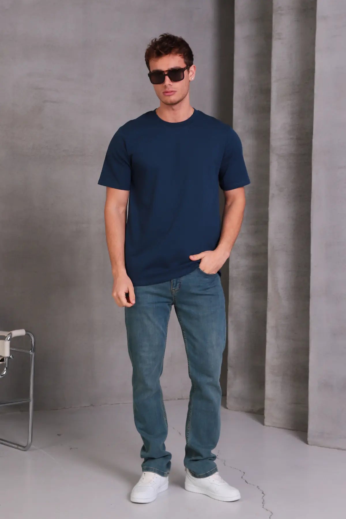 Erkek Relax Fit Bisiklet Yaka %100 Pamuk Rahat Kesim Basic Tişört