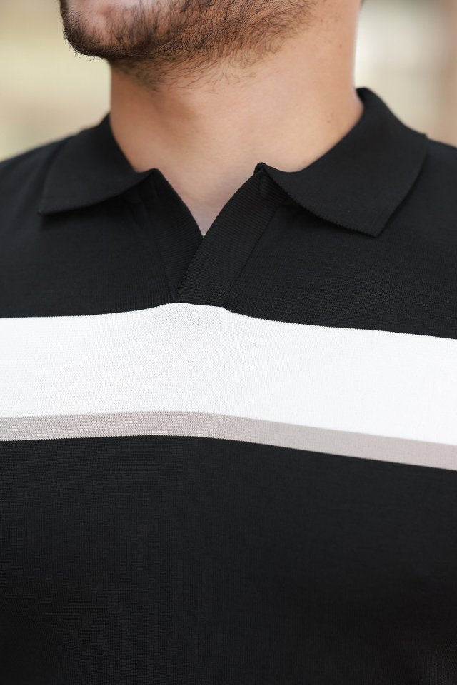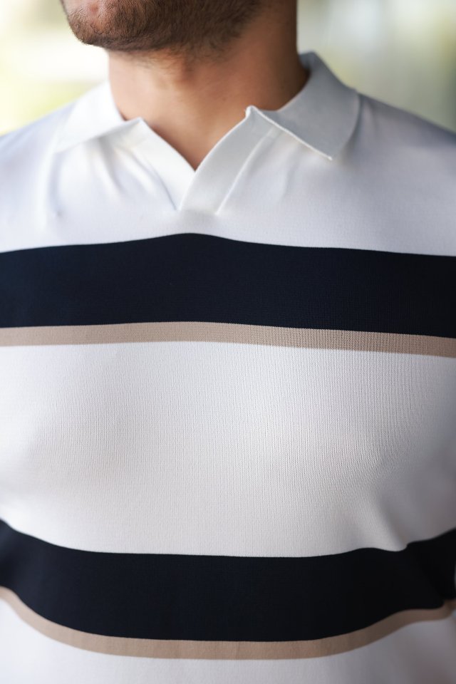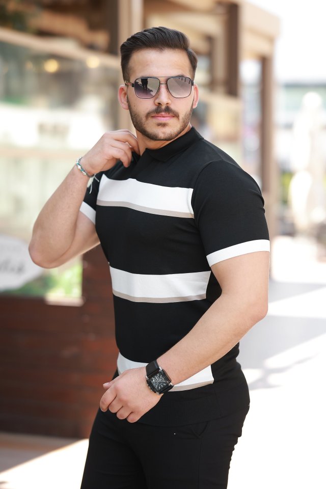 Erkek şerit Desenli Hemşire Yaka Kısa Kollu Tişört