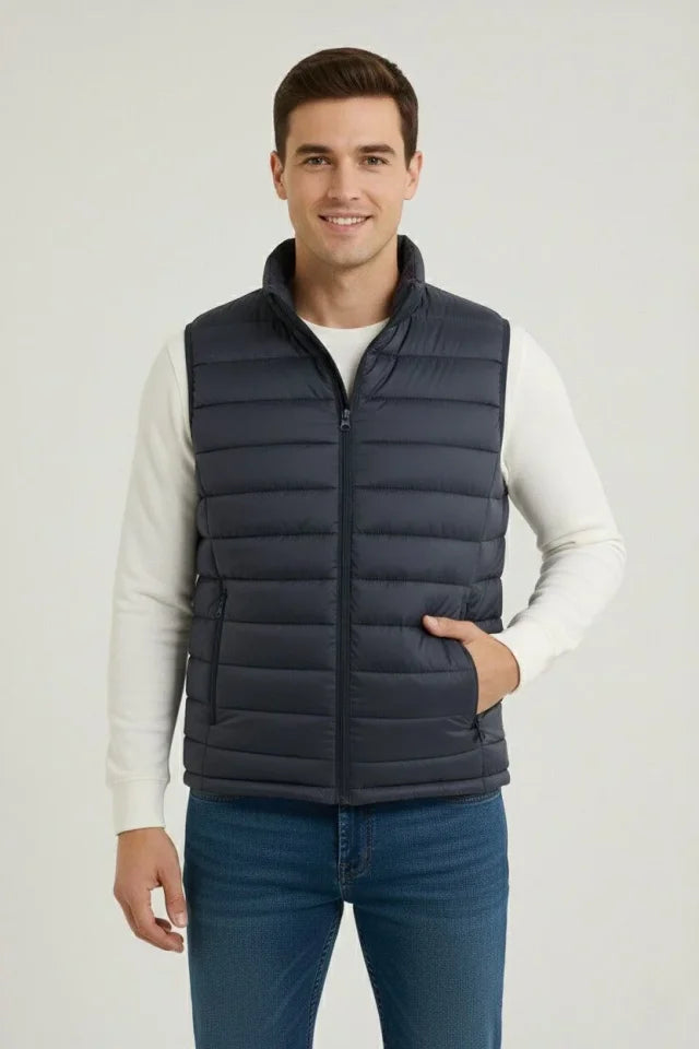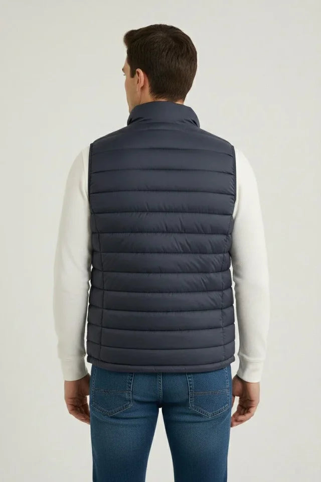 Erkek Şişme Fermuarlı Yelek Su Itici Kapitone Astarlı Kumaş Cepli Hafif Kışlık Spor Rahat Kalıp - Lacivert