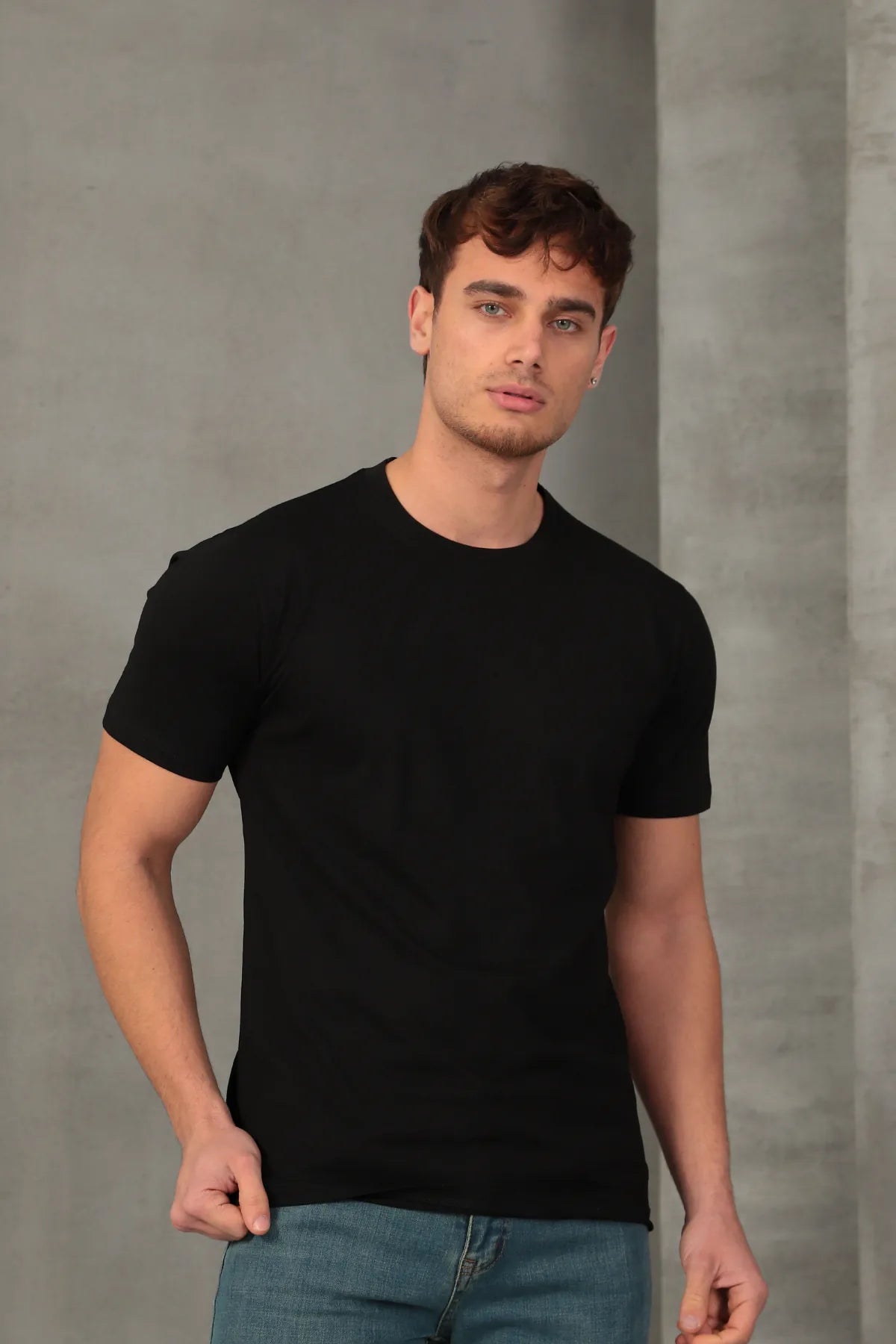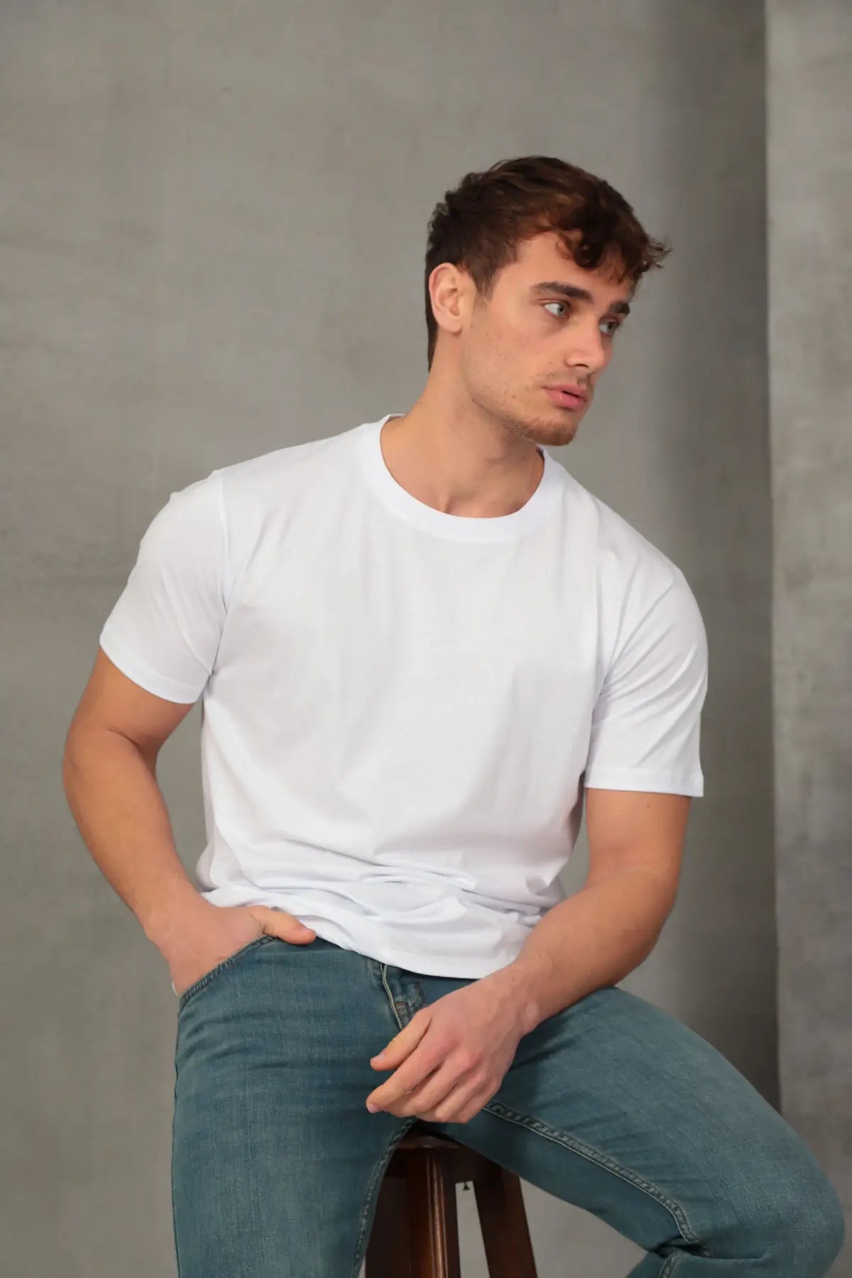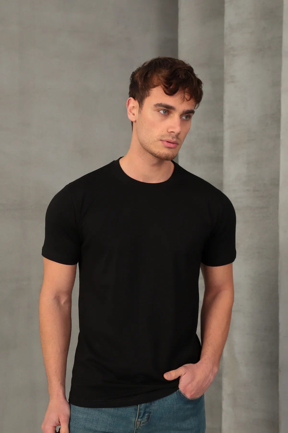 Erkek Slim Fit Bisiklet Yaka %100 Pamuk Dar Kesim Basic Tişört