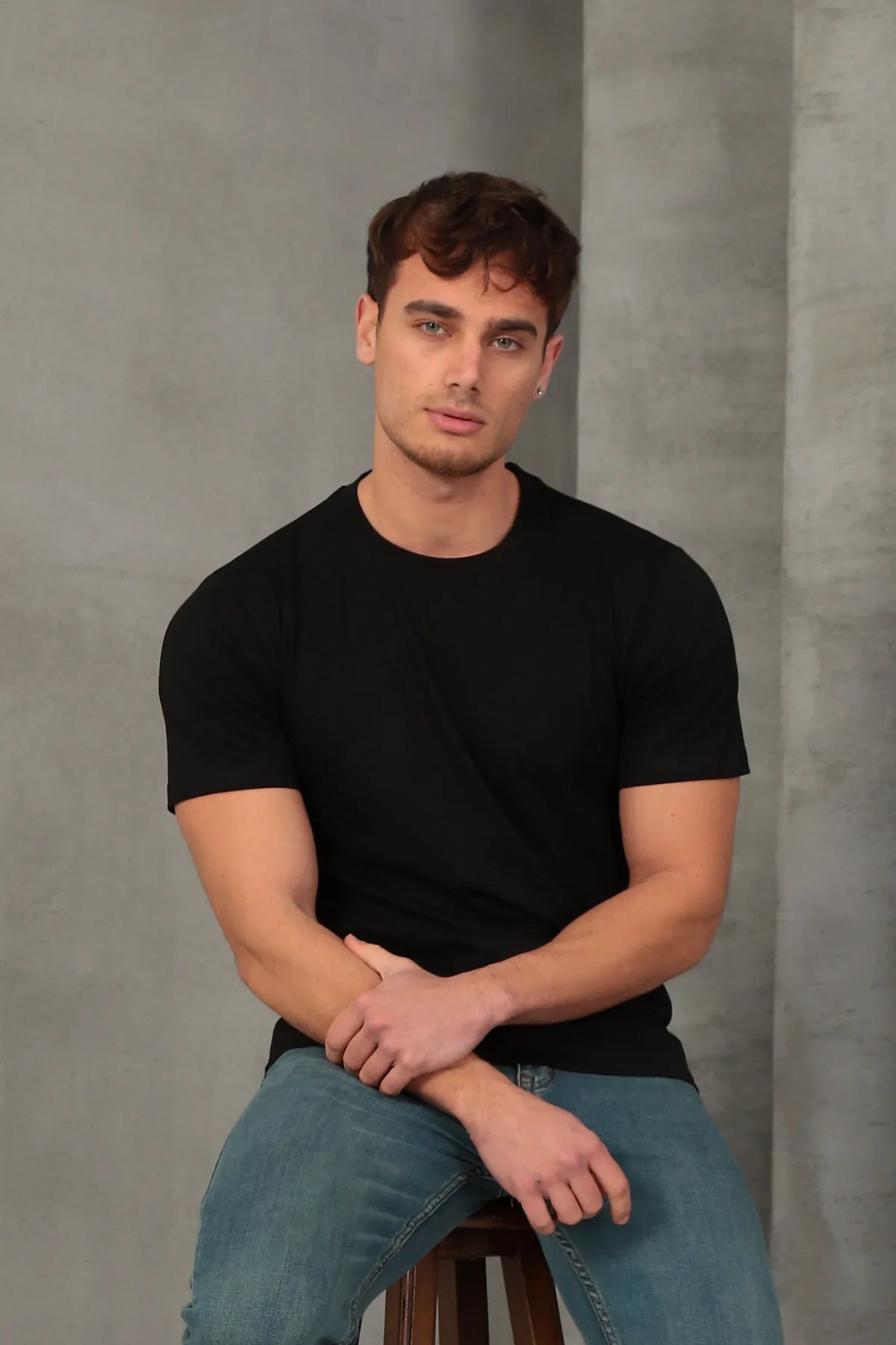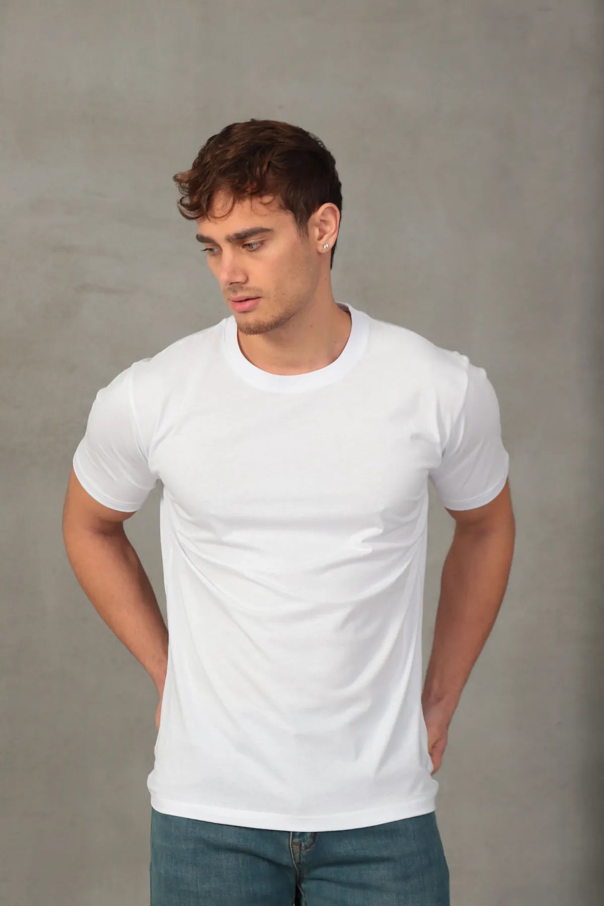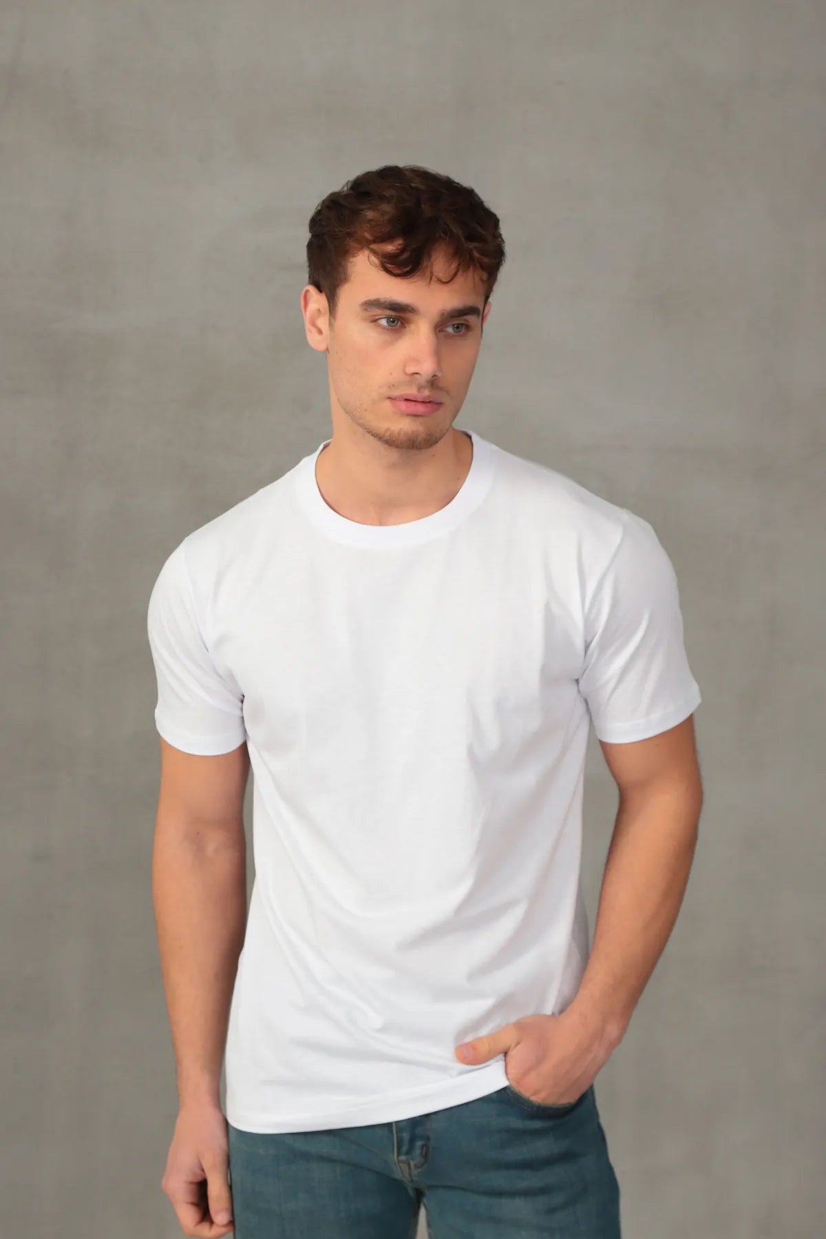 Erkek Slim Fit Bisiklet Yaka %100 Pamuk Dar Kesim Basic Tişört