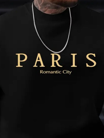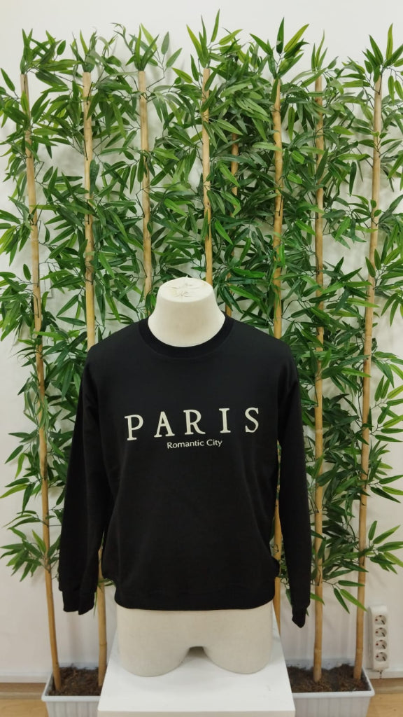 Erkek Uzun Kollu Bisiklet Yaka Paris Yazılı Iki Iplik Bluz