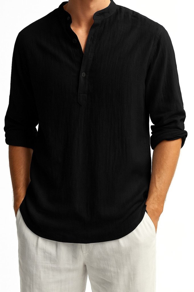 Erkek Uzun Kollu Hakim Yaka Düğmeli Erkek Müslim Gömlek