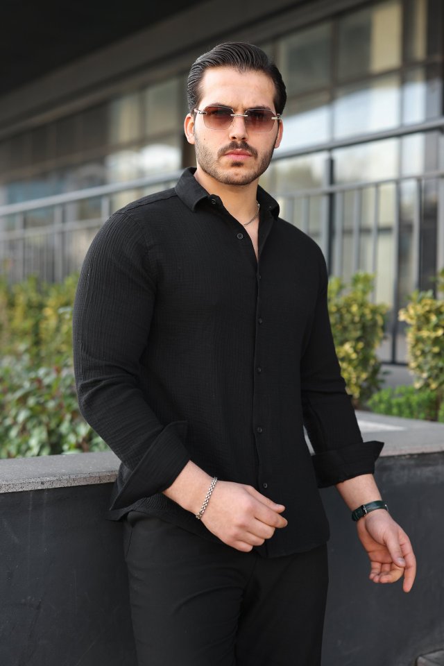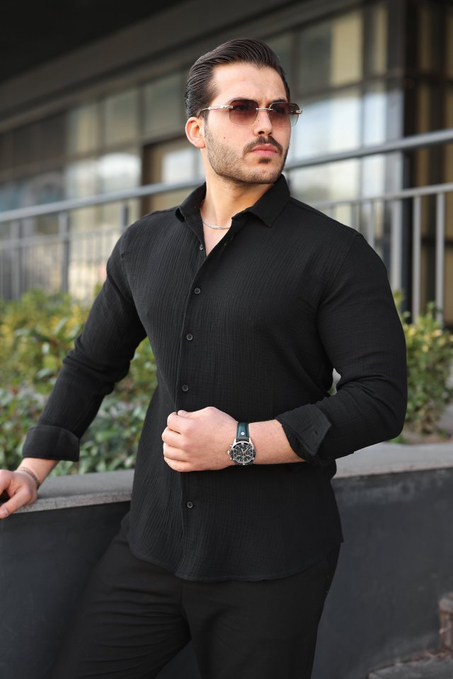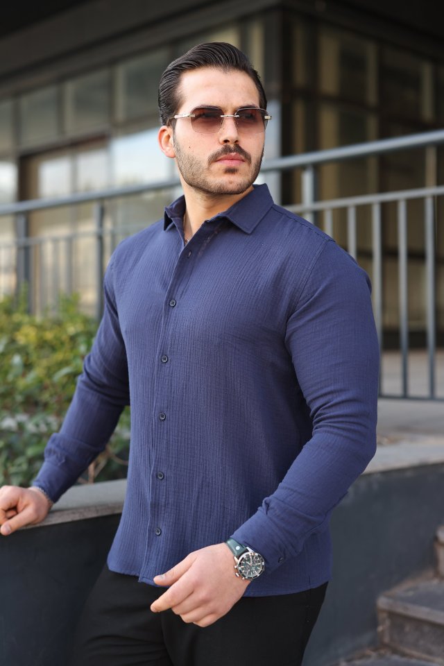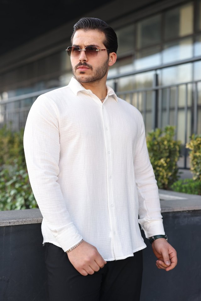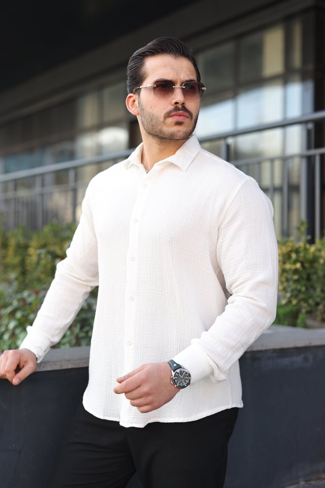 Erkek Uzun Kollu Müslin Kumaş Gömlek