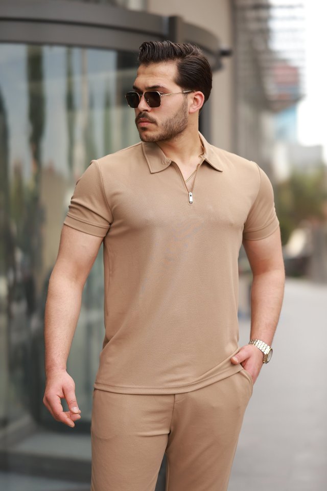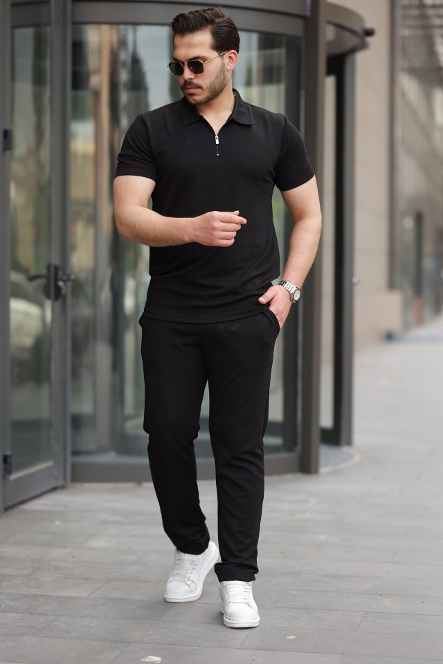 Erkek Yakalı Fermuarlı T-shirt Pantolon Ikili Rahat Takım