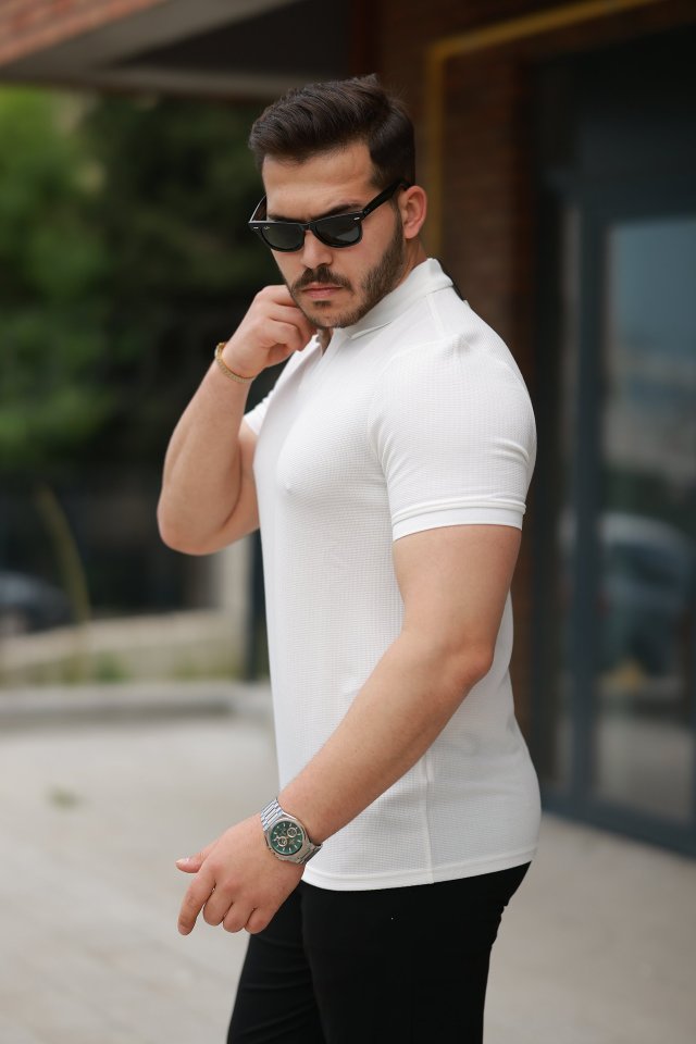 Erkek Yakalı Waffle Dokulu Kısa Kollu Tişört
