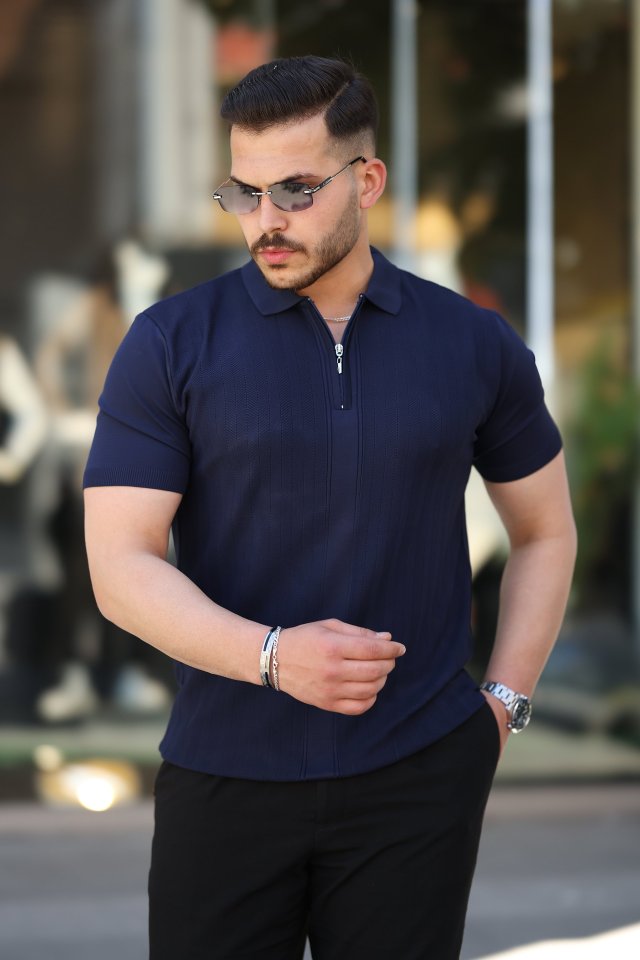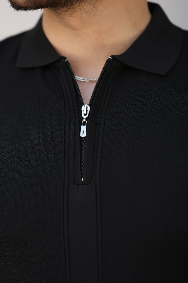 Erkek Yakası Fermuarlı Kısa Kollu T-shirt