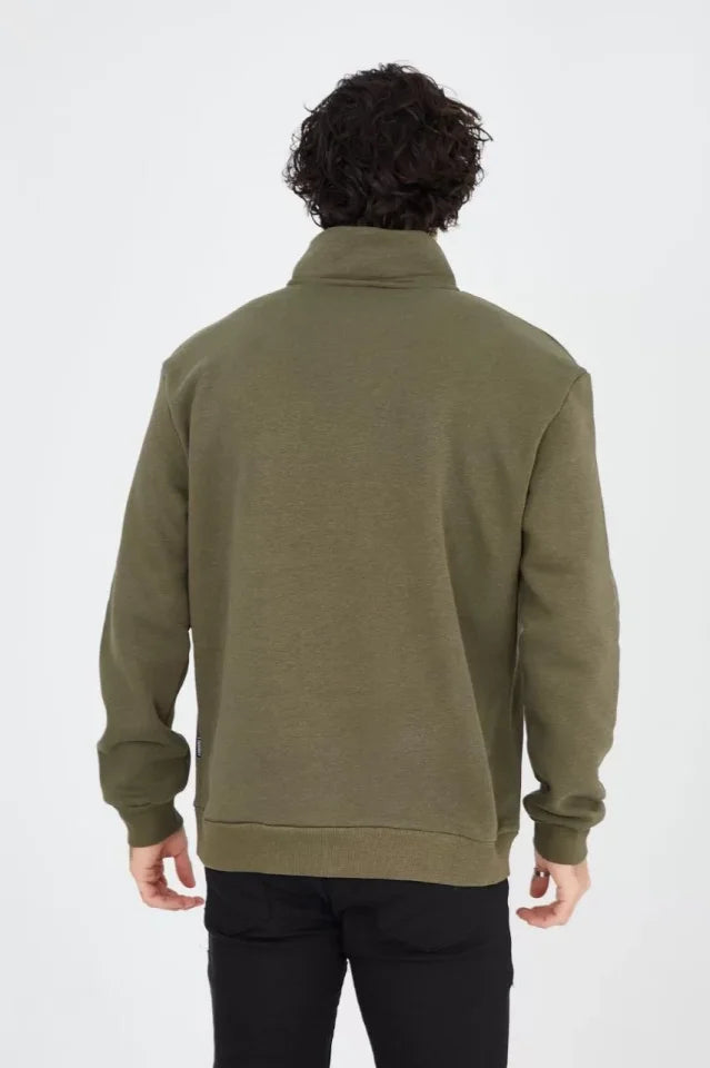 Erkek Yarım Fermuarlı Baskılı Sweat - Yeşil