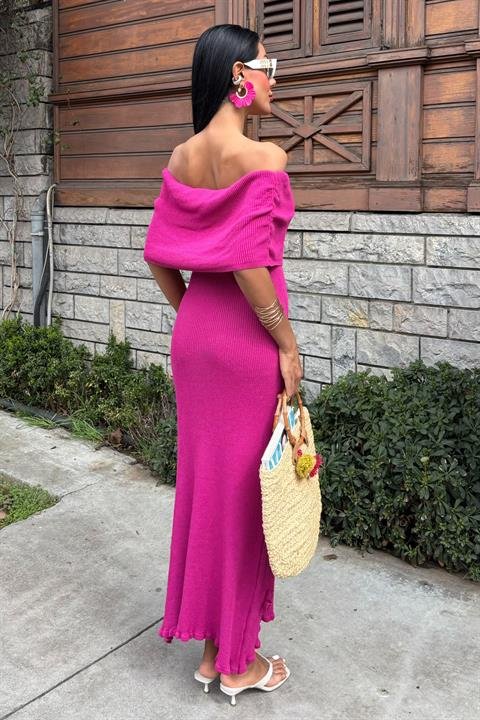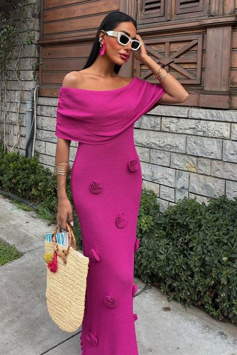 Eteği Gül Detay Madonna Yaka Elbise 2863