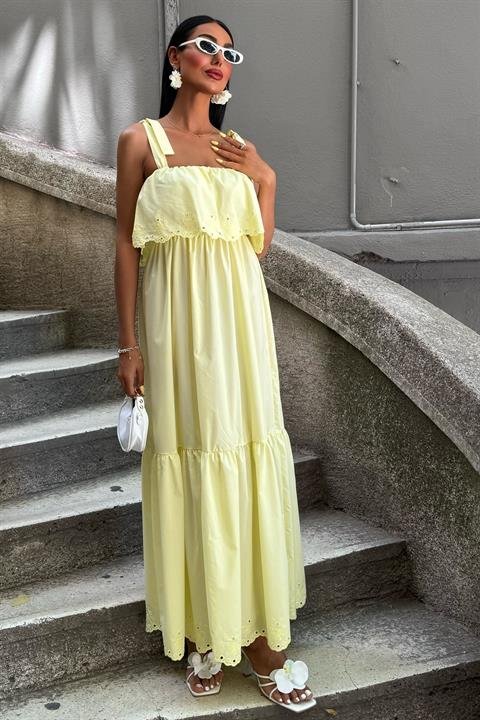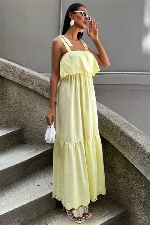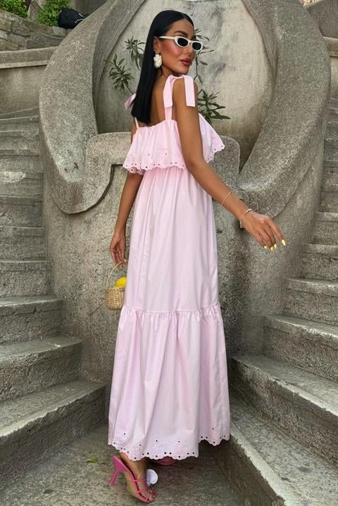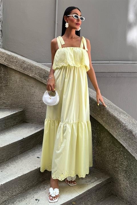 Etek Ucu Brode Nakışlı Boyundan Bağlamalı Elbise 2881