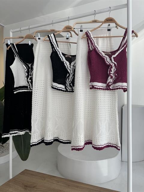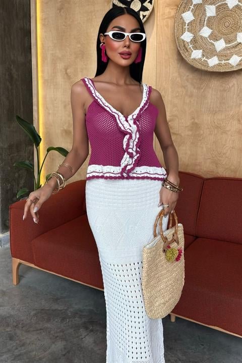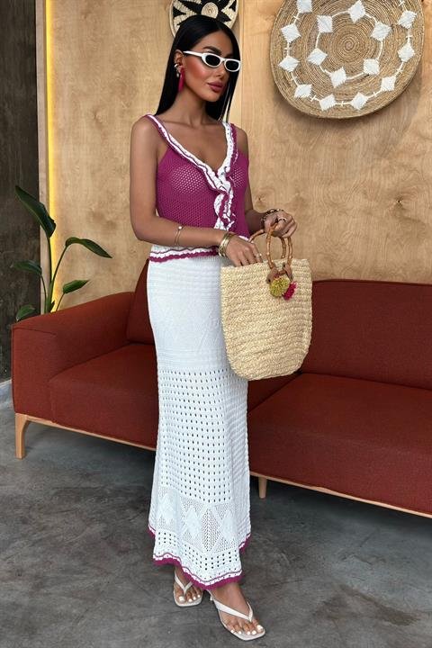 Fırfır Detaylı Uzun Etekli Triko Takım 10115