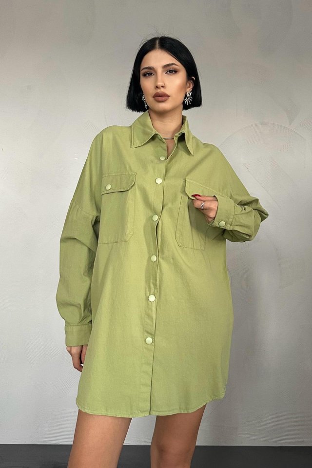 Fuşya Çift Cep Kapaklı Çıtçıtlı Gömlek