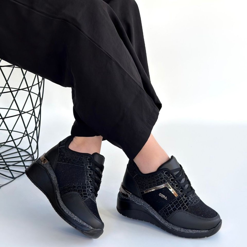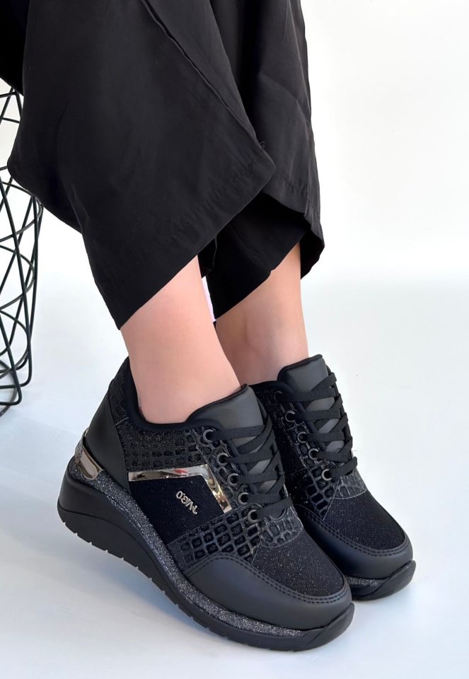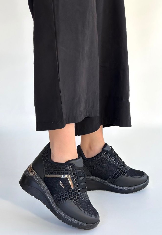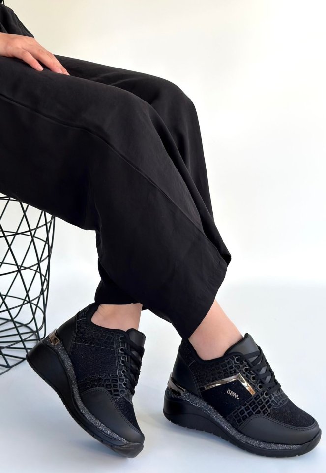 Geja Siyah Cilt Bağcıklı Spor Ayakkabı