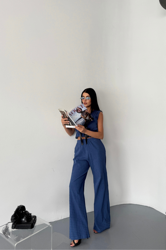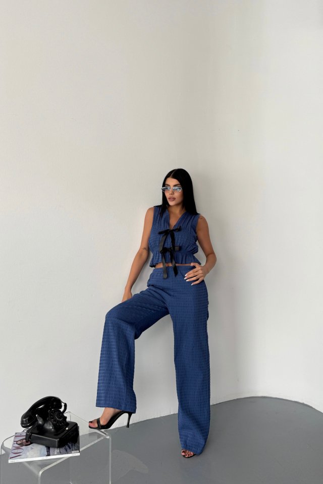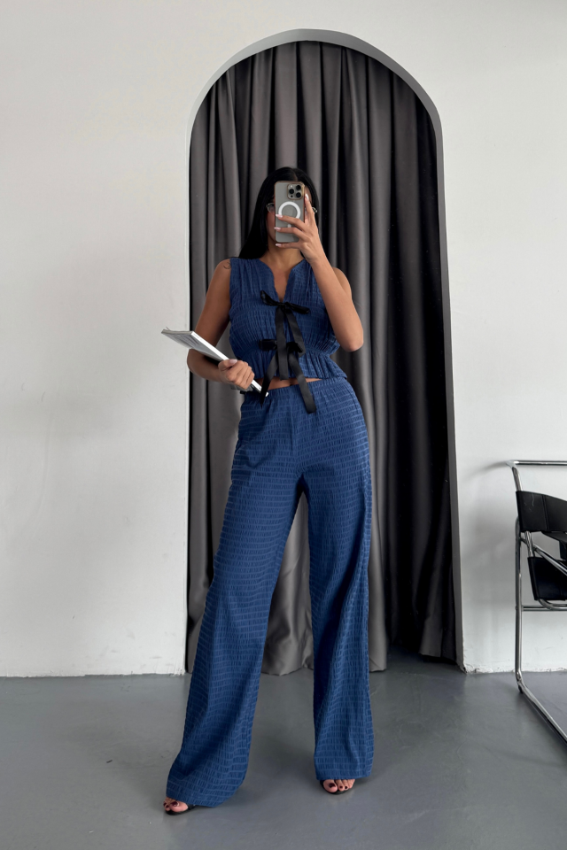 GOFRE BLUZ-PANTOLON TK KURDELE DETAYLI - Siyah