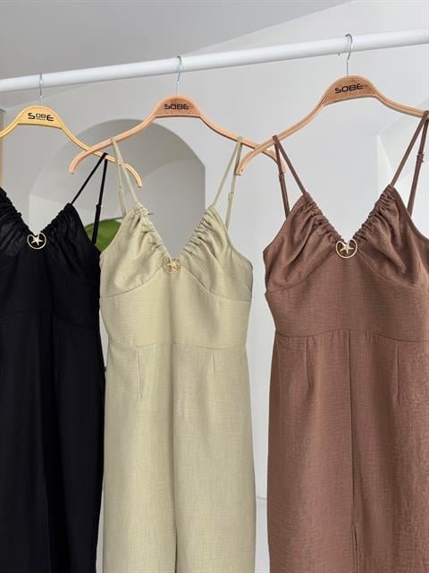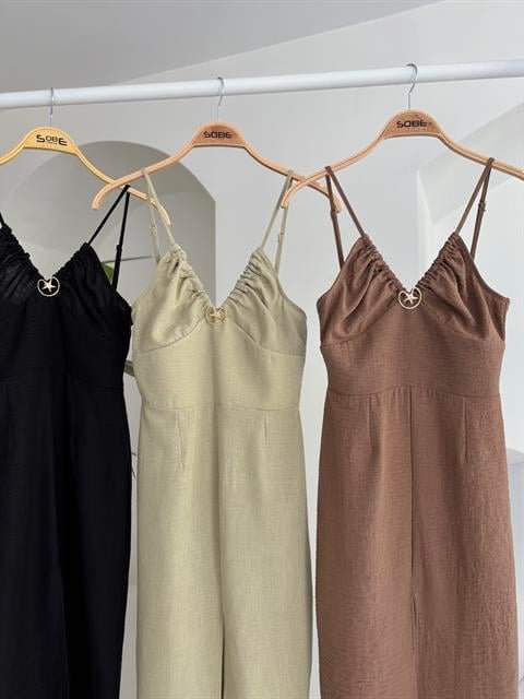 Göğsü Aksesuarlı Önü Yırtmaçlı Elbise 2899