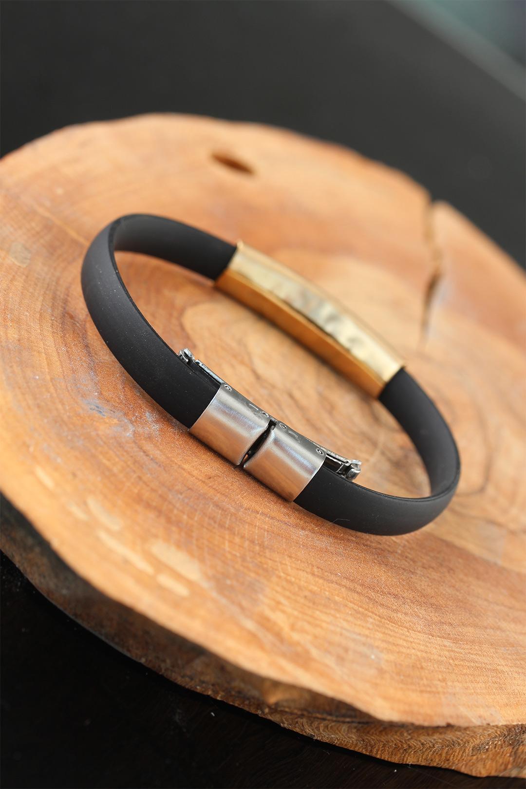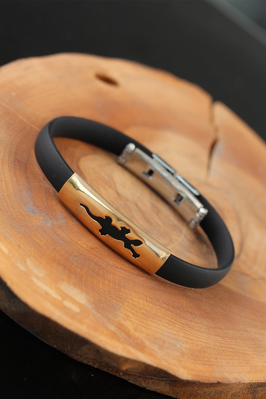 Gold Renk Çelik Semender Tasarım Siyah Renk Silikon Erkek Bileklik
