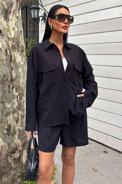 Gömlek Ve Şort Flamlı Keten Takım 10130