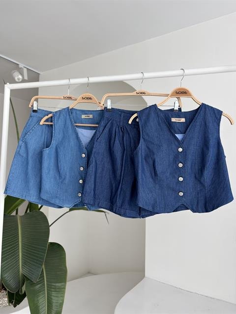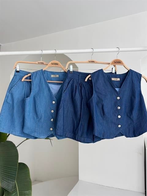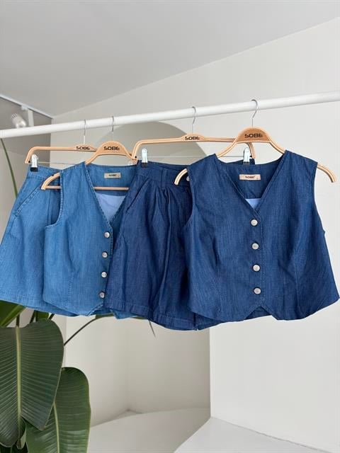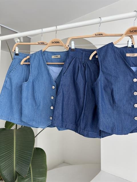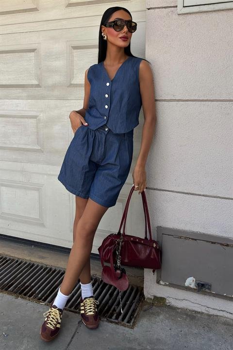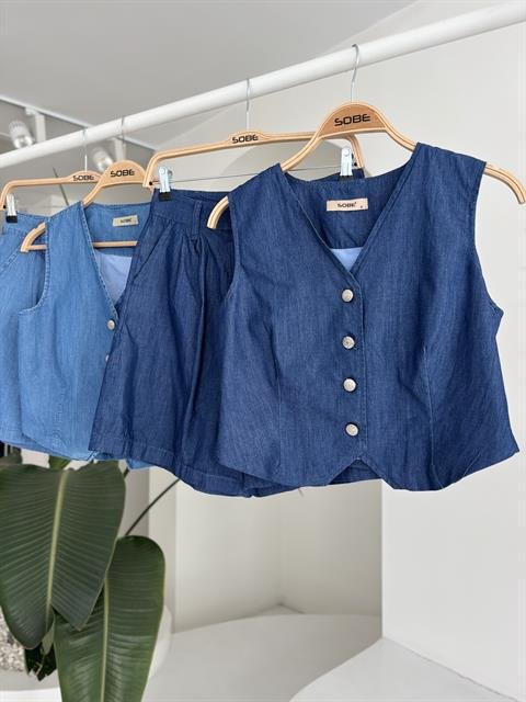 Gümüş Düğmeli Yelek Ve Şort Tensel Takım 10174