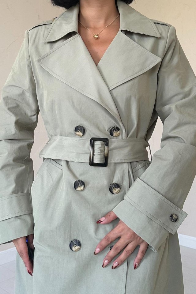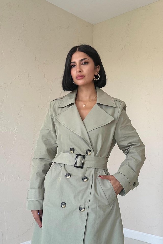 Haki Uzun Kemerli Trençkot