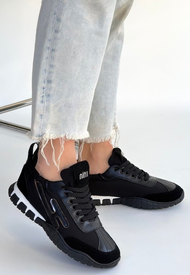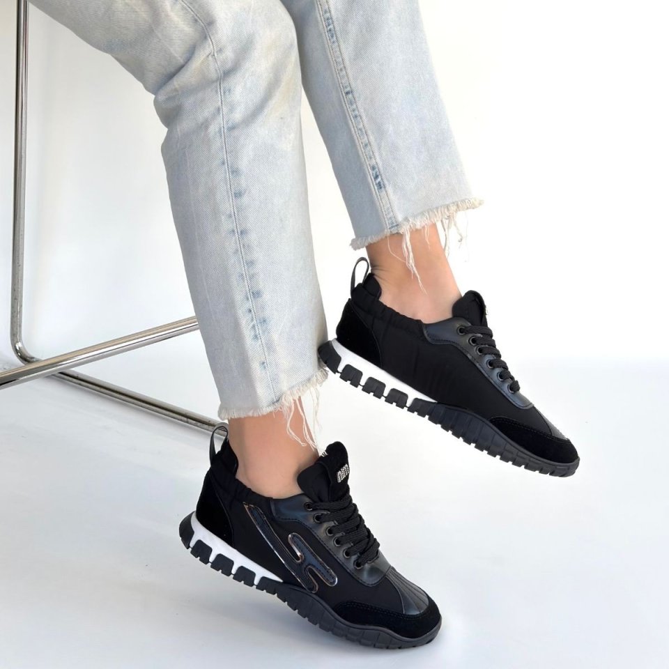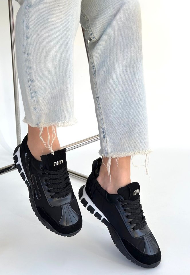 Huer Siyah Nubuk Bağcıklı Spor Ayakkabı